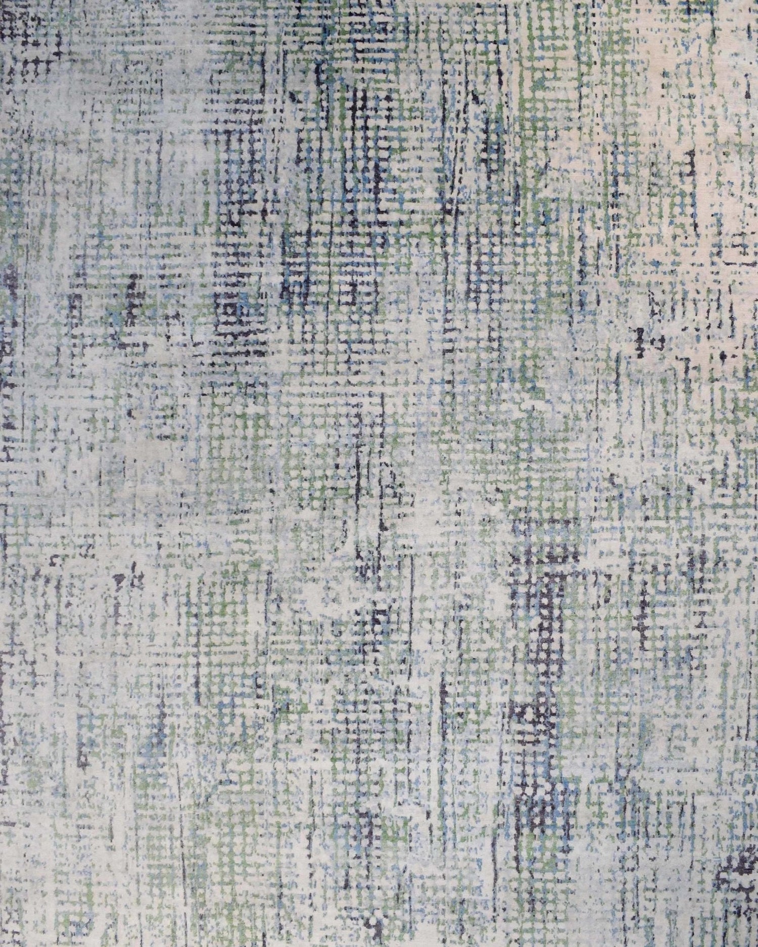 Expertly crafted, the Abstract Ivory, Blue, and Moss Green Area Rug is hand knotted with art silk for a luxurious feel. The abstract design in blue, ivory, and green adds a modern touch to any room. Measuring 8x10, this area rug is the perfect addition to elevate your home decor.