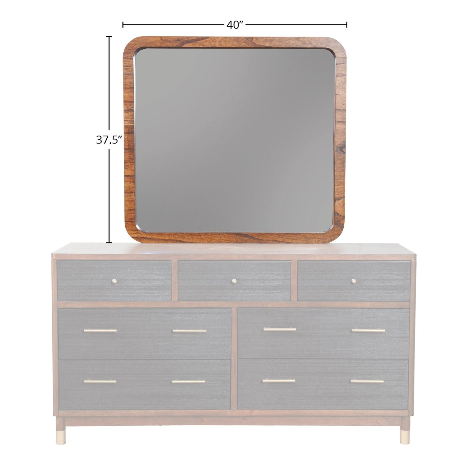 Transitional styling, the Belham Bedroom collection combines multiple materials including Mahogany solids for a sophisticated look. The bedroom mirror is finished in a dark walnut (brown) finish. Attaches to coordinating dresser sold separately. Coordinates with other pieces from the Belham bedroom collection also sold separately.