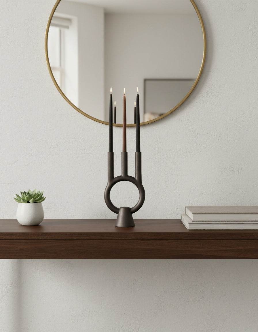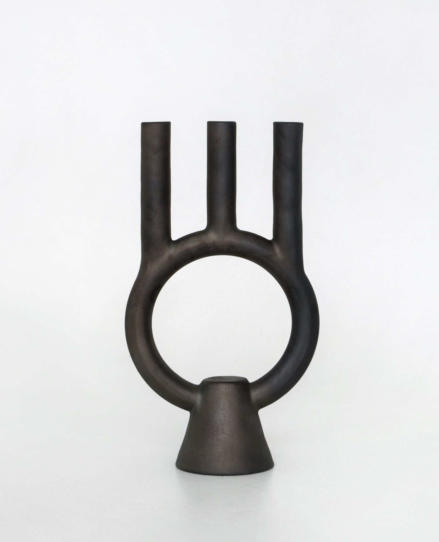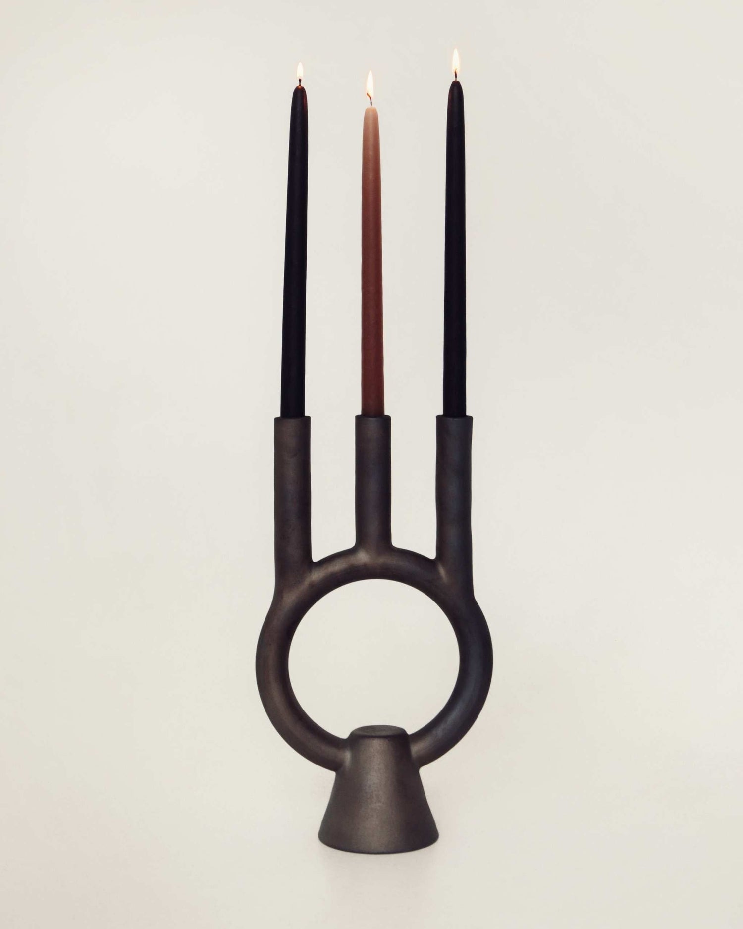 Smoke-Fired Ceramic Black Candle Holder Shadows.