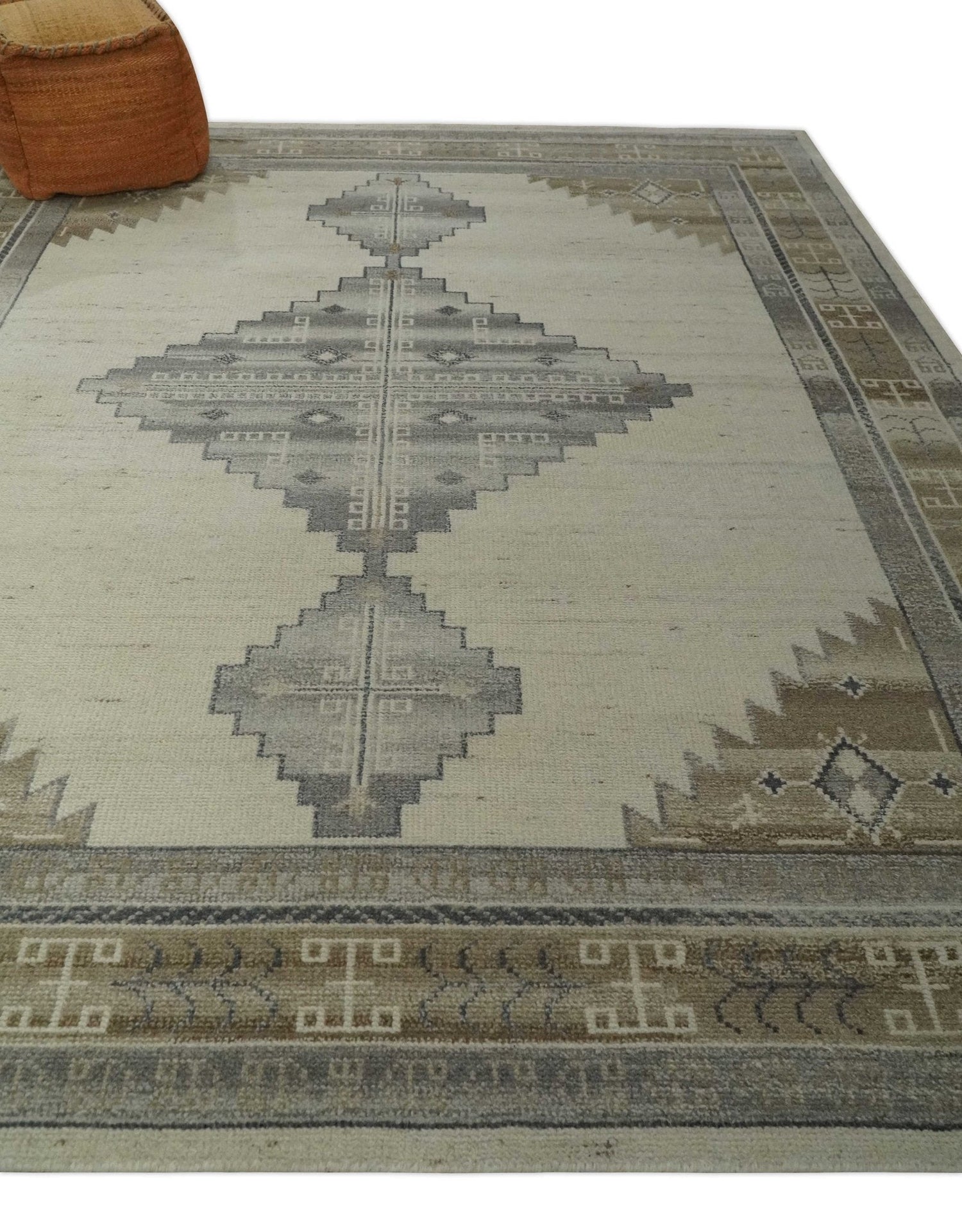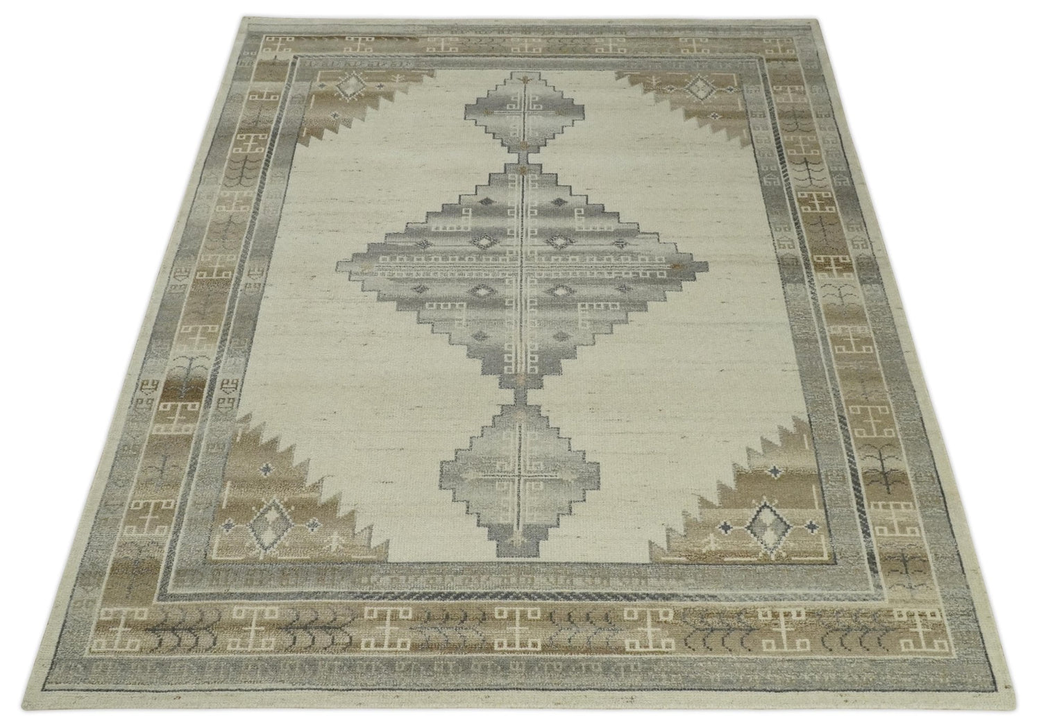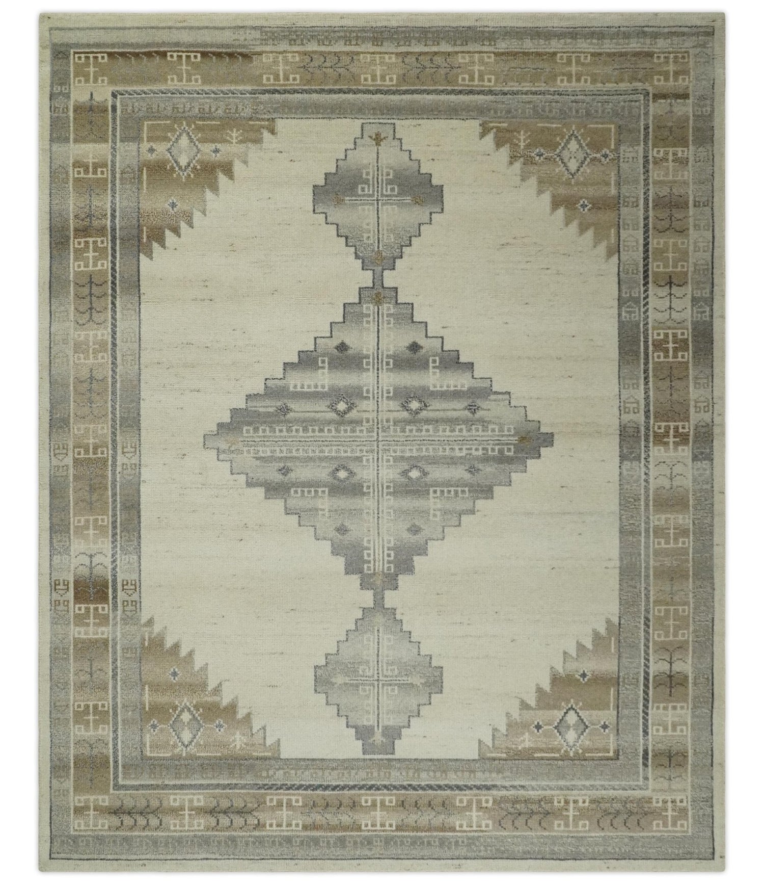 This Premium Look Hand Knotted Wool Area Rug is the perfect addition for any living room or bedroom. Expertly hand-knotted from wool for superior quality, the ivory, charcoal, and beige colors bring an inviting warmth that will last for years. Enjoy the look and feel of a premium rug perfect for any space!