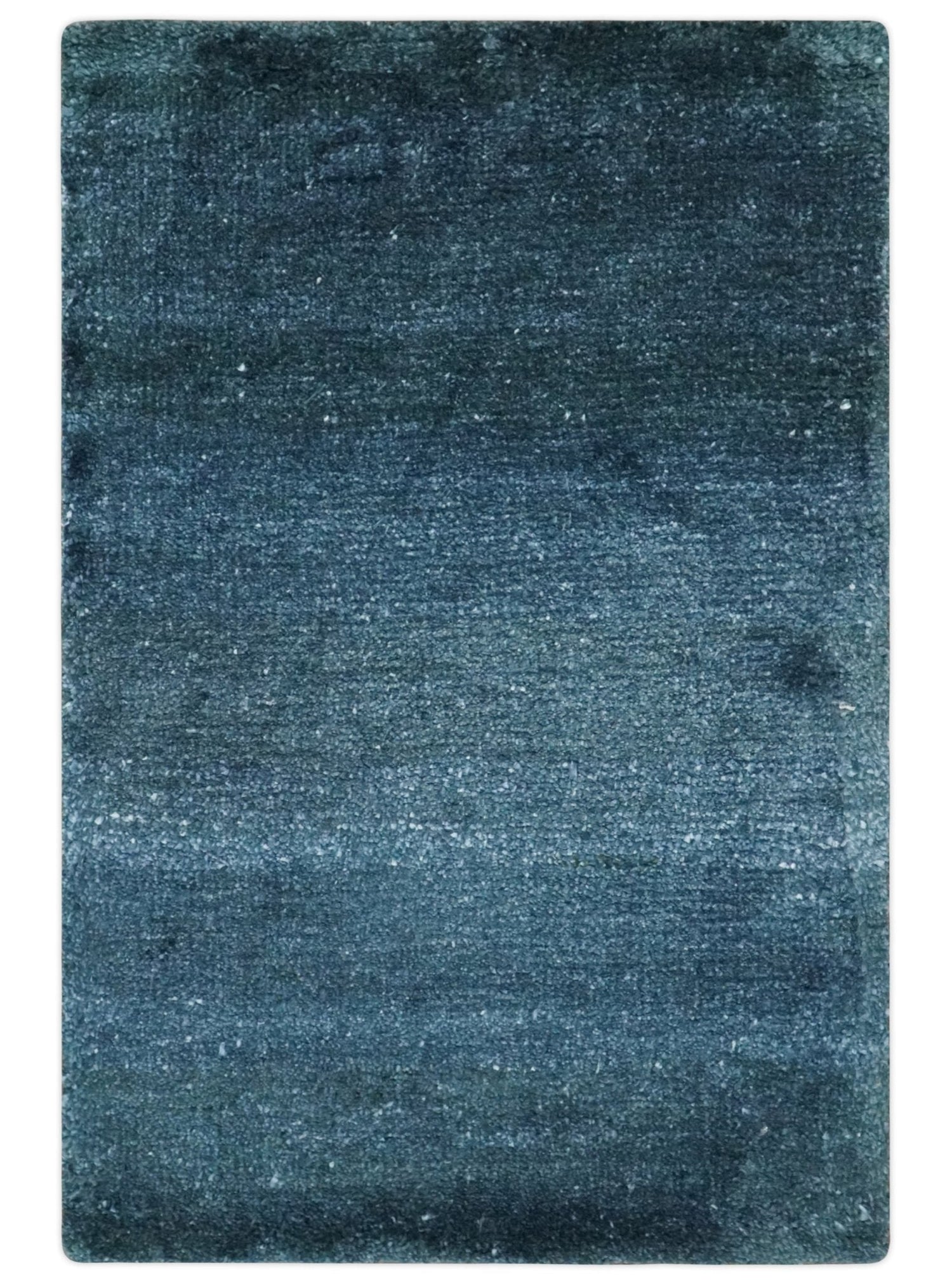 Dark Blue 2x3 Hand Knotted Solid Blue Rug made with Art Silk | N6623