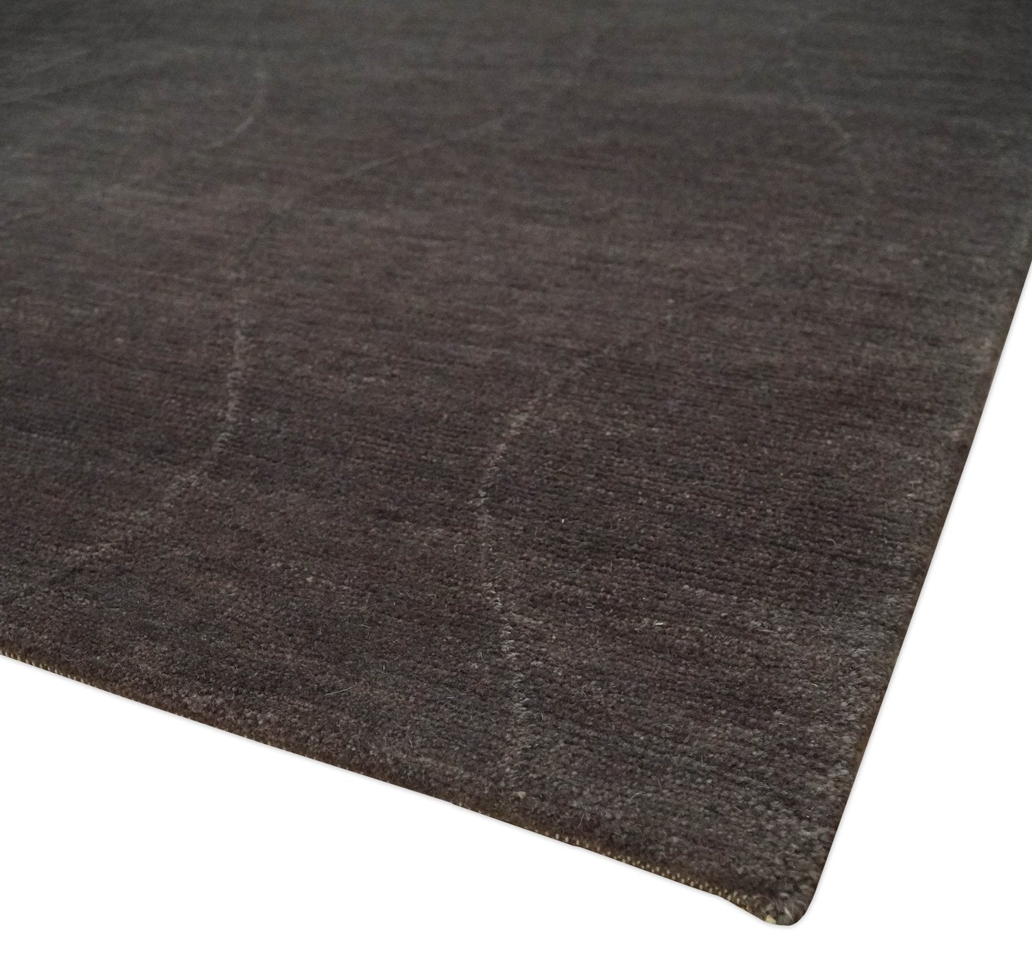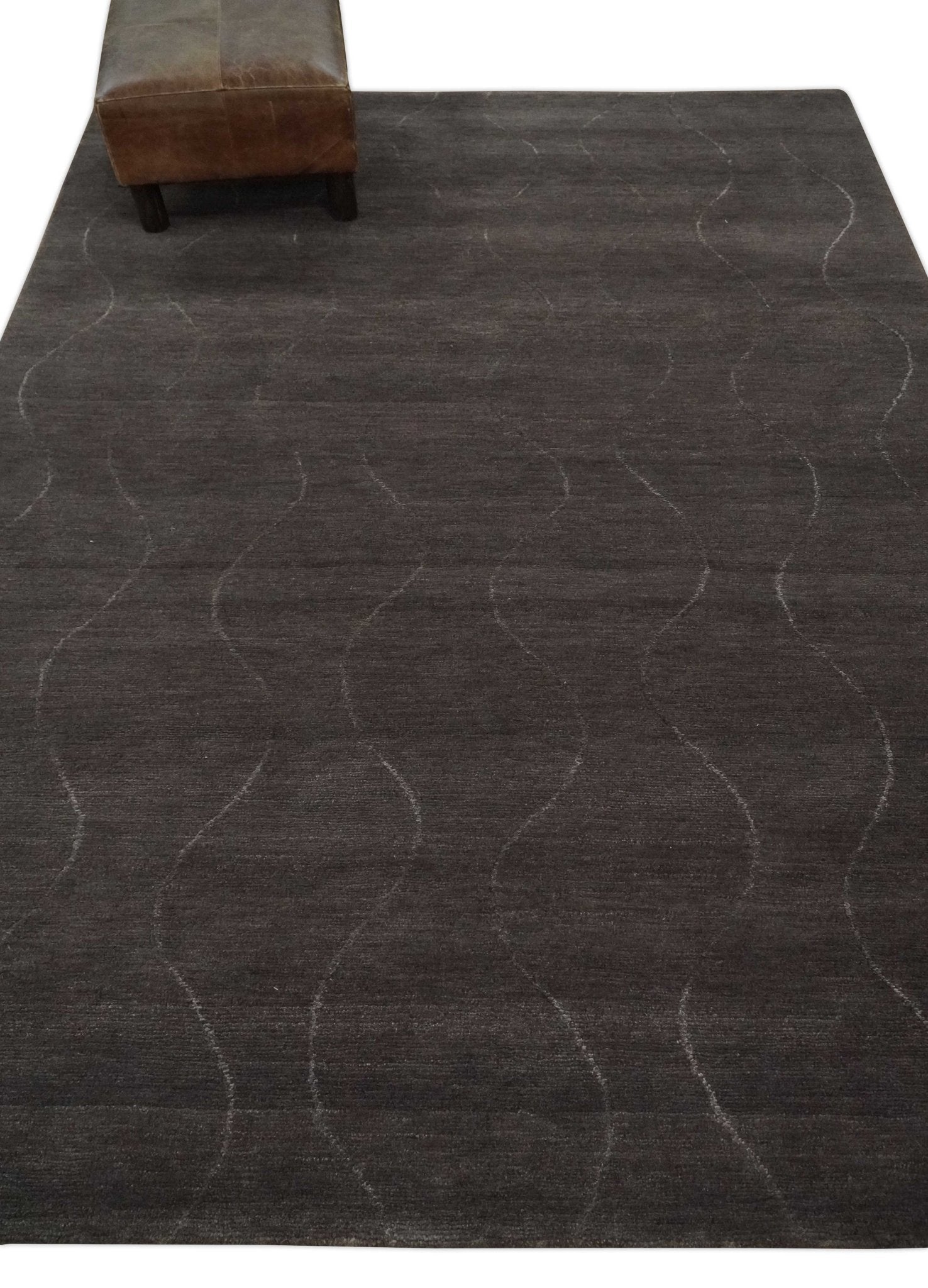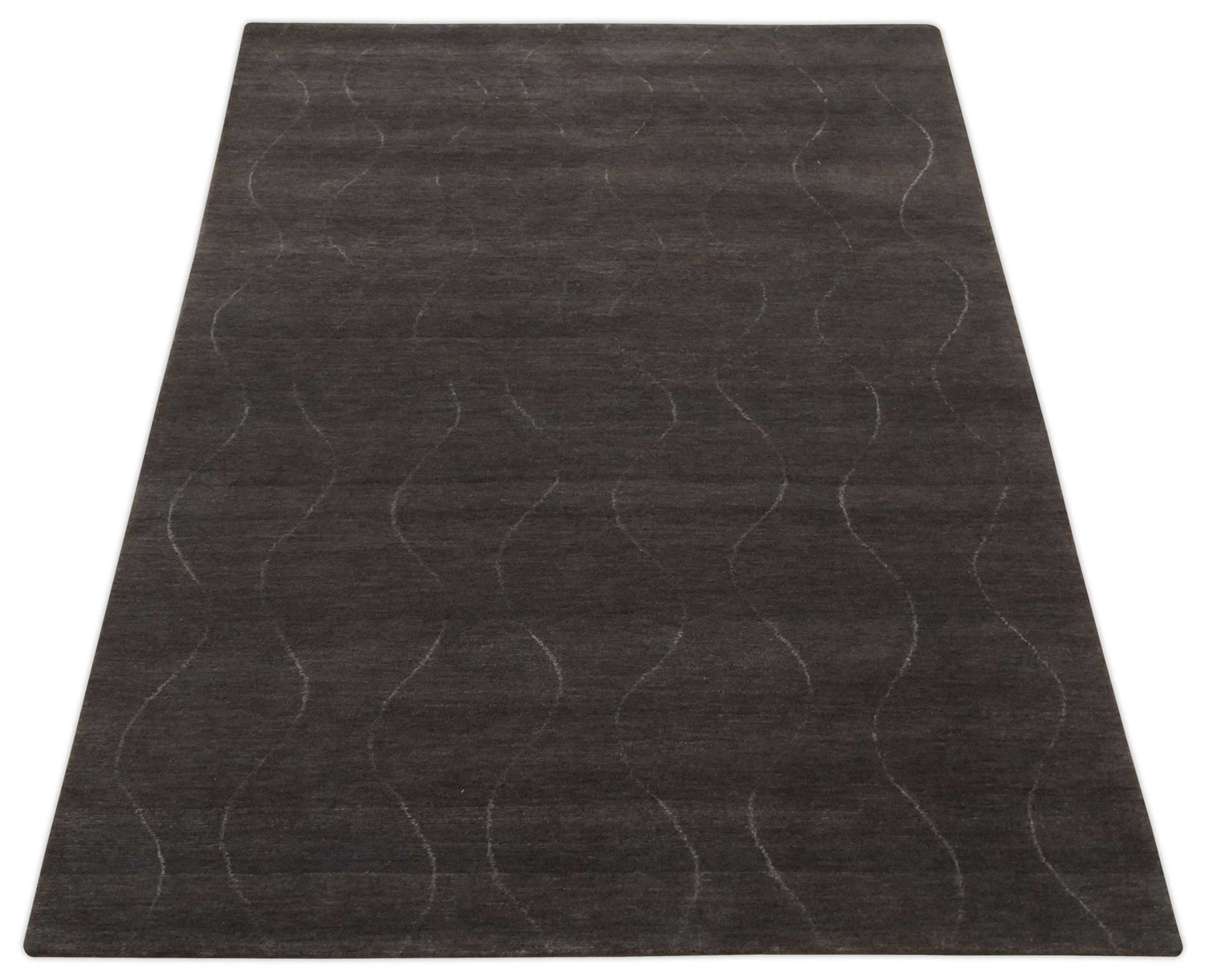 Dark Brown and Ivory Modern Stripes Pattern Hand knotted 5x7 wool and Art Silk Area Rug