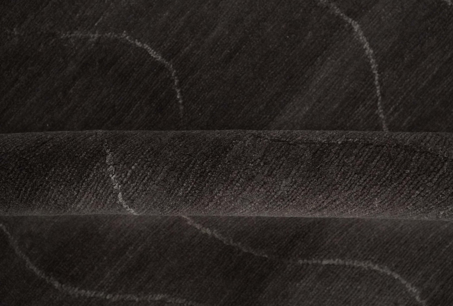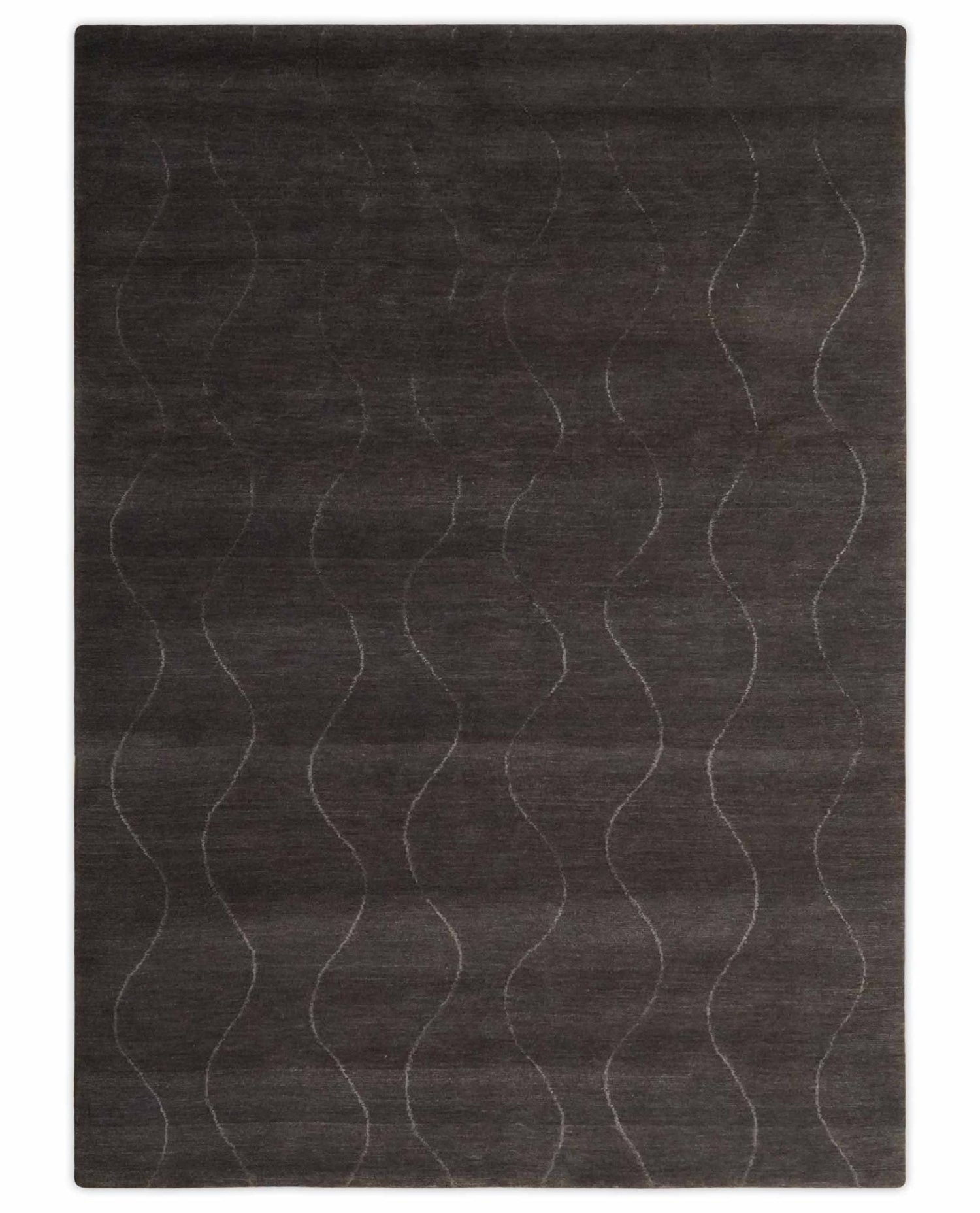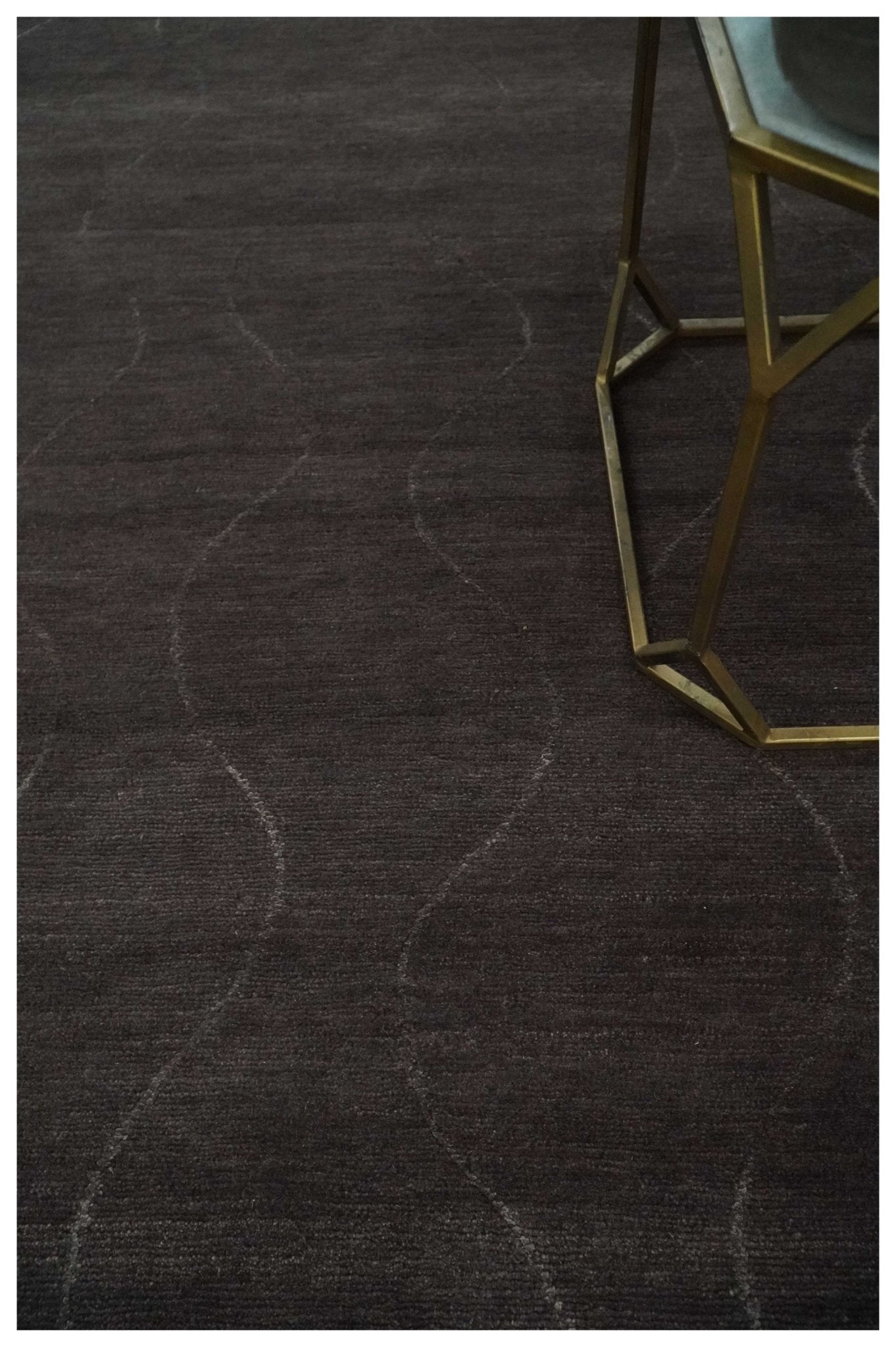 Dark Brown and Ivory Modern Stripes Pattern Hand knotted 5x7 wool and Art Silk Area Rug
