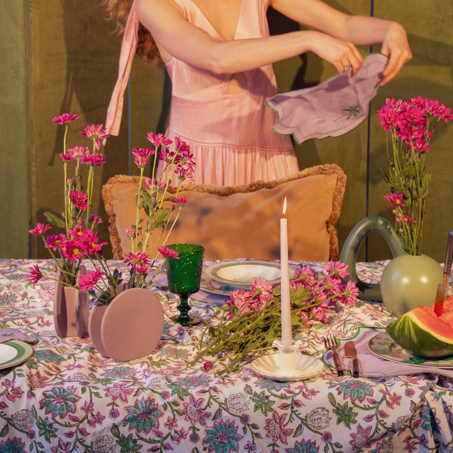 The delicate lilac hue of this taper candle brings forth the calm serenity of a blossoming spring garden.