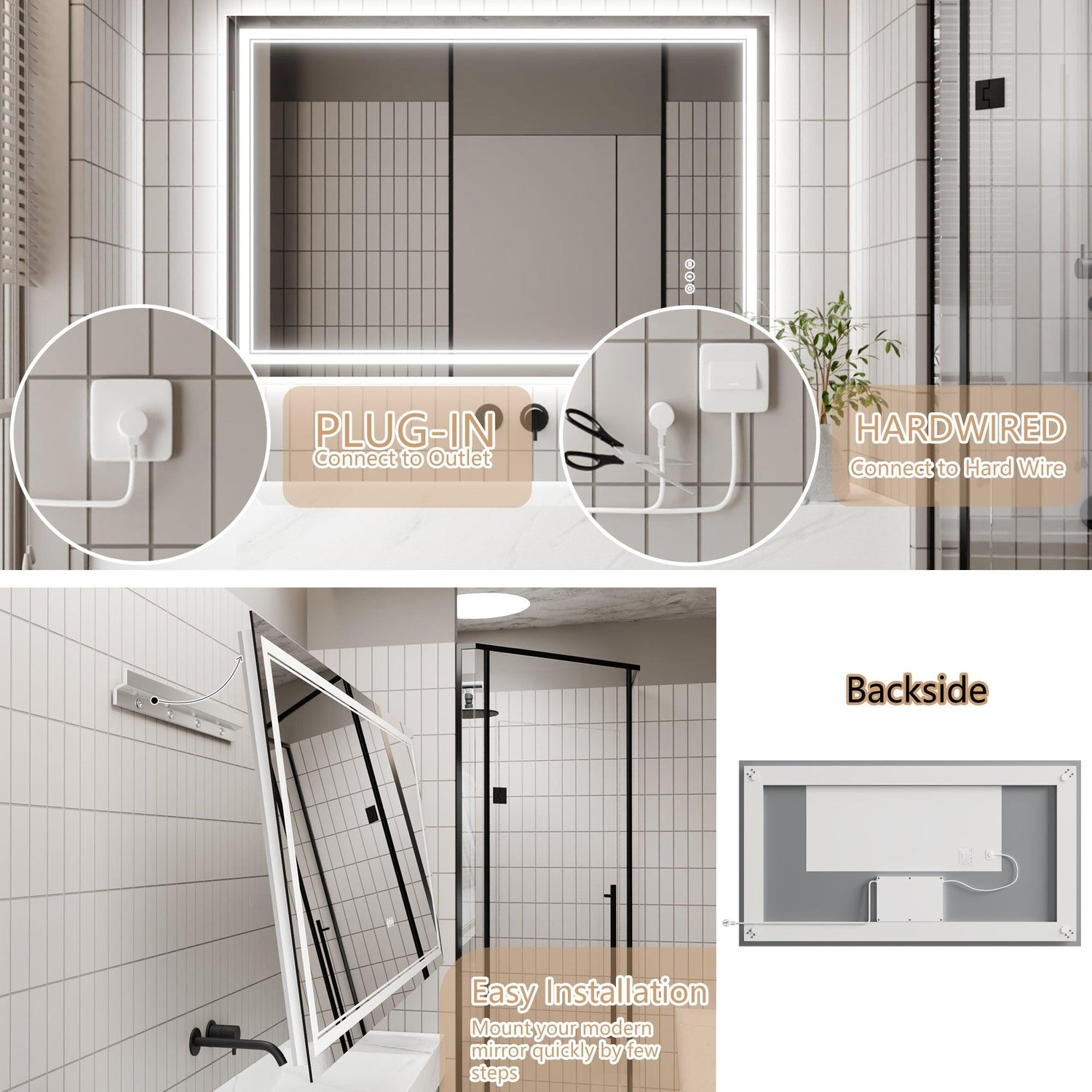 【Easy To Install】: Thoughtfully designed for practical installation, this wall-mounted vanity mirror comes with a 5-foot cord and plug suitable for standard outlets. Alternatively, the plug can be removed for hardwiring directly to a junction box. A full mounting hardware kit is included to streamline setup.