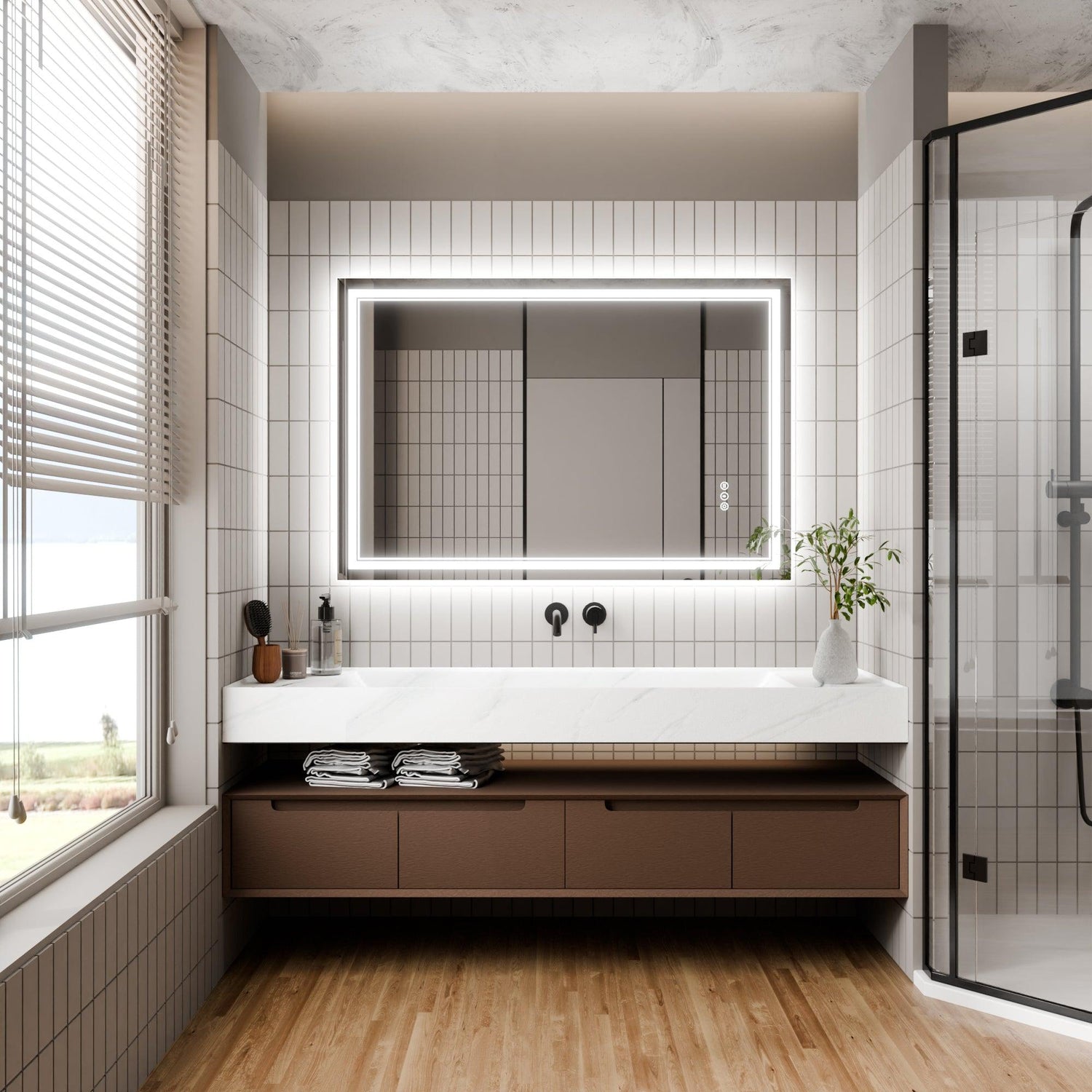 【Anti Fog】: Equipped with a separately controlled defogger activated by its own touch switch, this feature ensures your mirror remains clear even in steamy conditions. Designed for low power consumption, the anti-fog function is both safe and energy efficient.