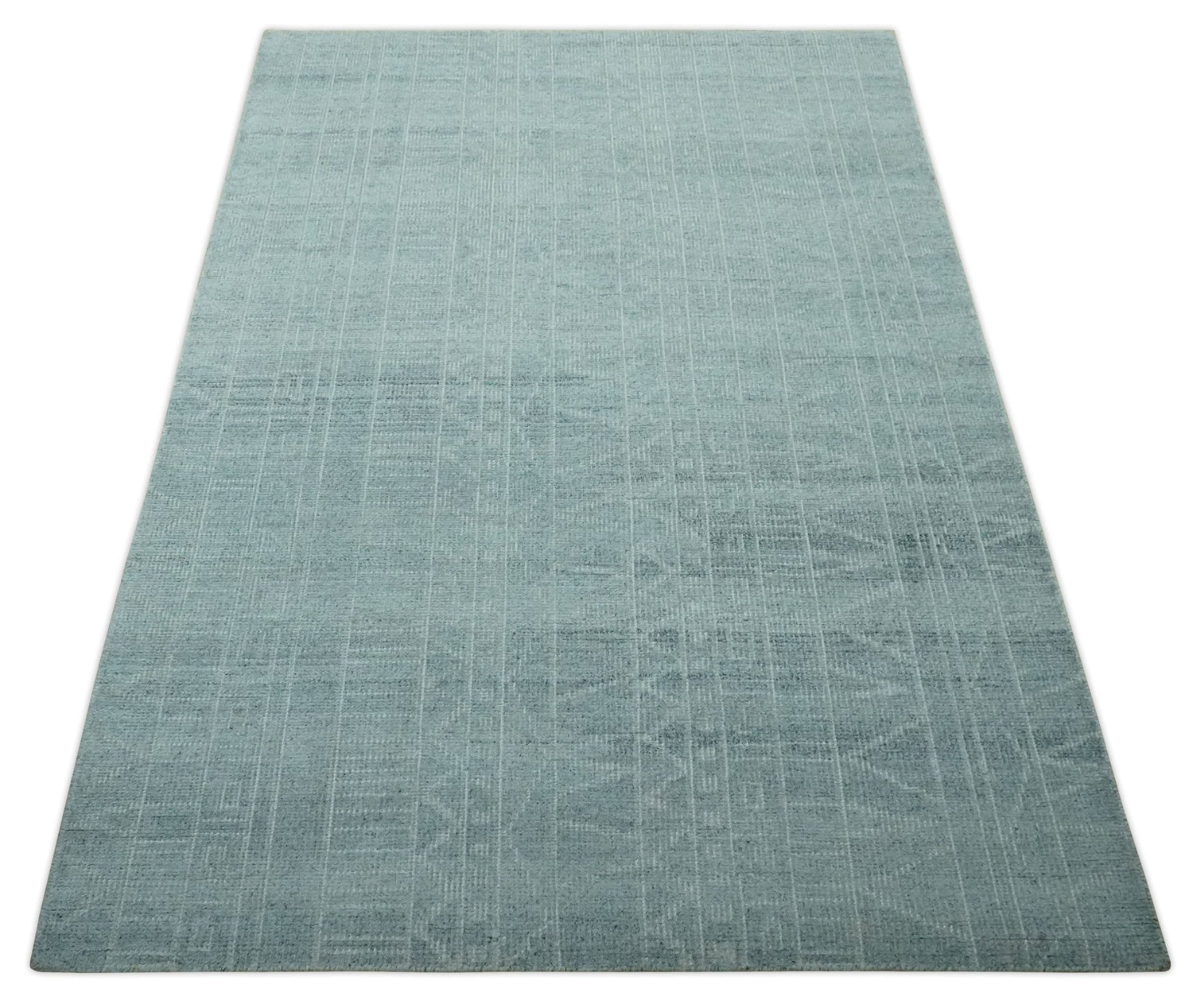 Gray and Silver 5x8 Stripes Design Hand Knotted wool and Art Silk Area Rug