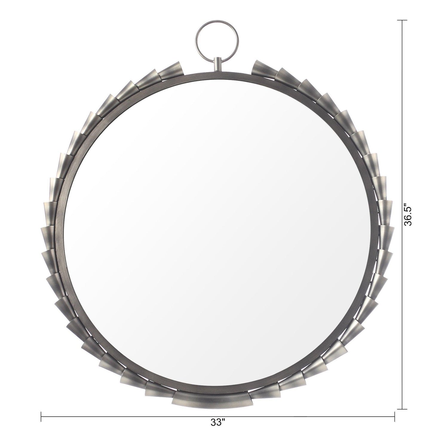 The Grey Modern Classic Sunset Wall Mirror, measuring 33 inches in width, artfully merges the charm of handcrafted, vintage-inspired edges with a contemporary aesthetic. Its oval frame is composed of radiant iron rays that extend outward, creating a sunburst effect that is both elegant and subtle. This piece adapts seamlessly to a variety of environments, whether situated in a rustic countryside setting or a dynamic urban home. Its versatile design complements any interior style, making it an ideal addition to hallways, living rooms, bathrooms, or entryways alike.