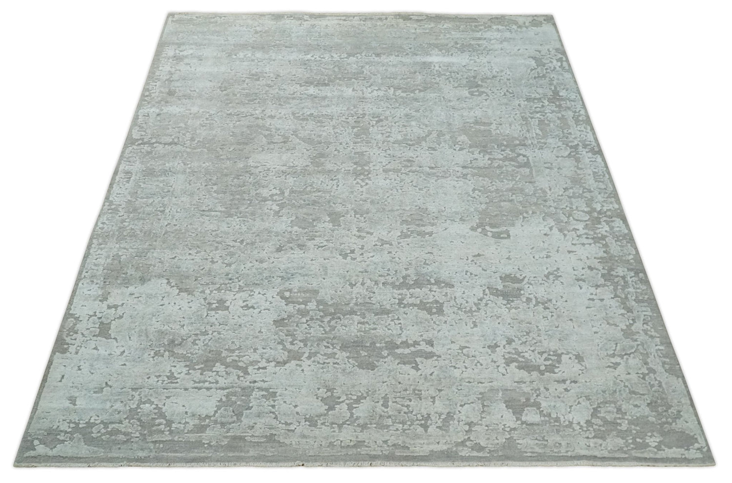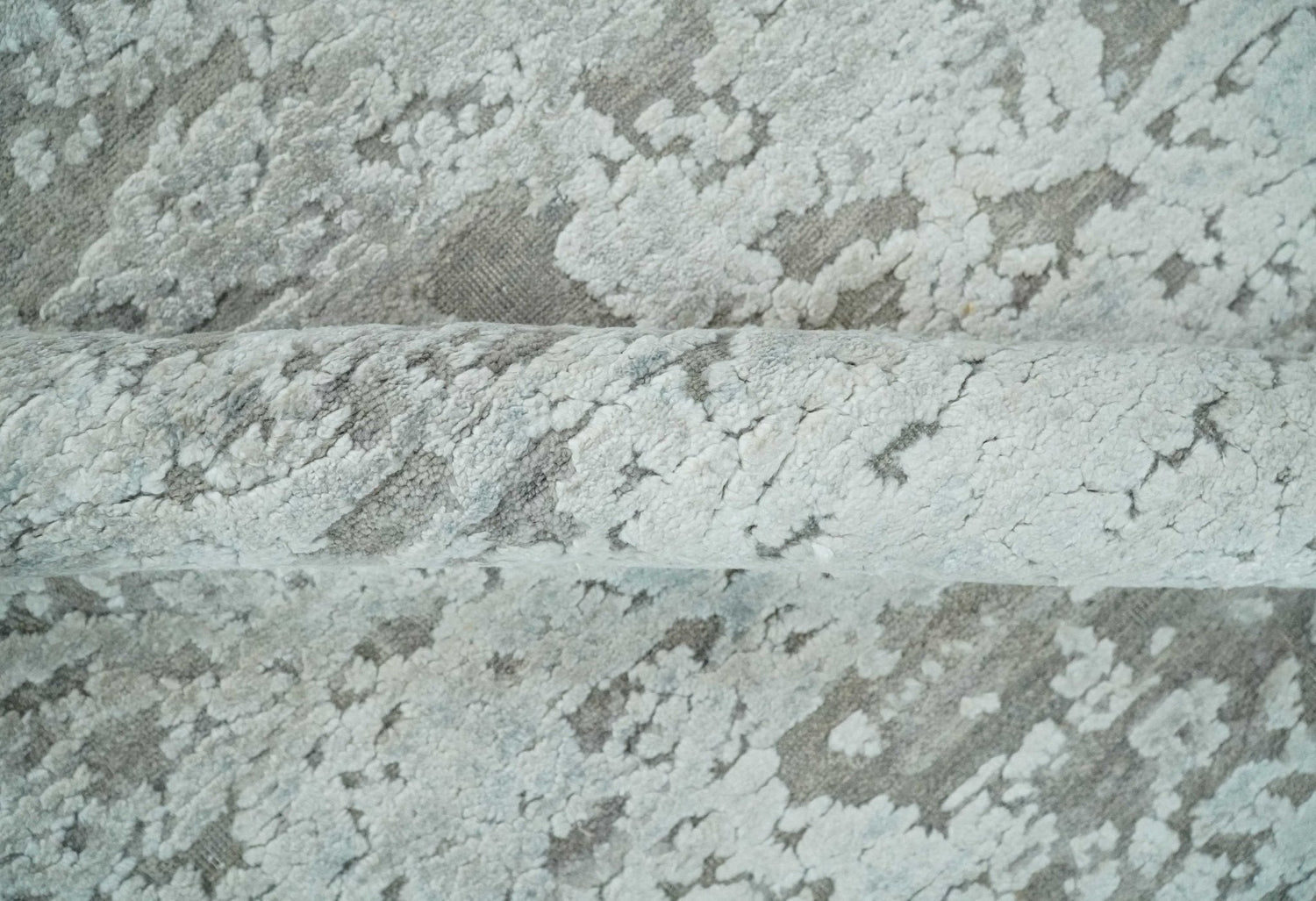 Hand Carved Texture Modern abstract Silver and Gray Hand Knotted 8x10 wool and Art Silk Area Rug
