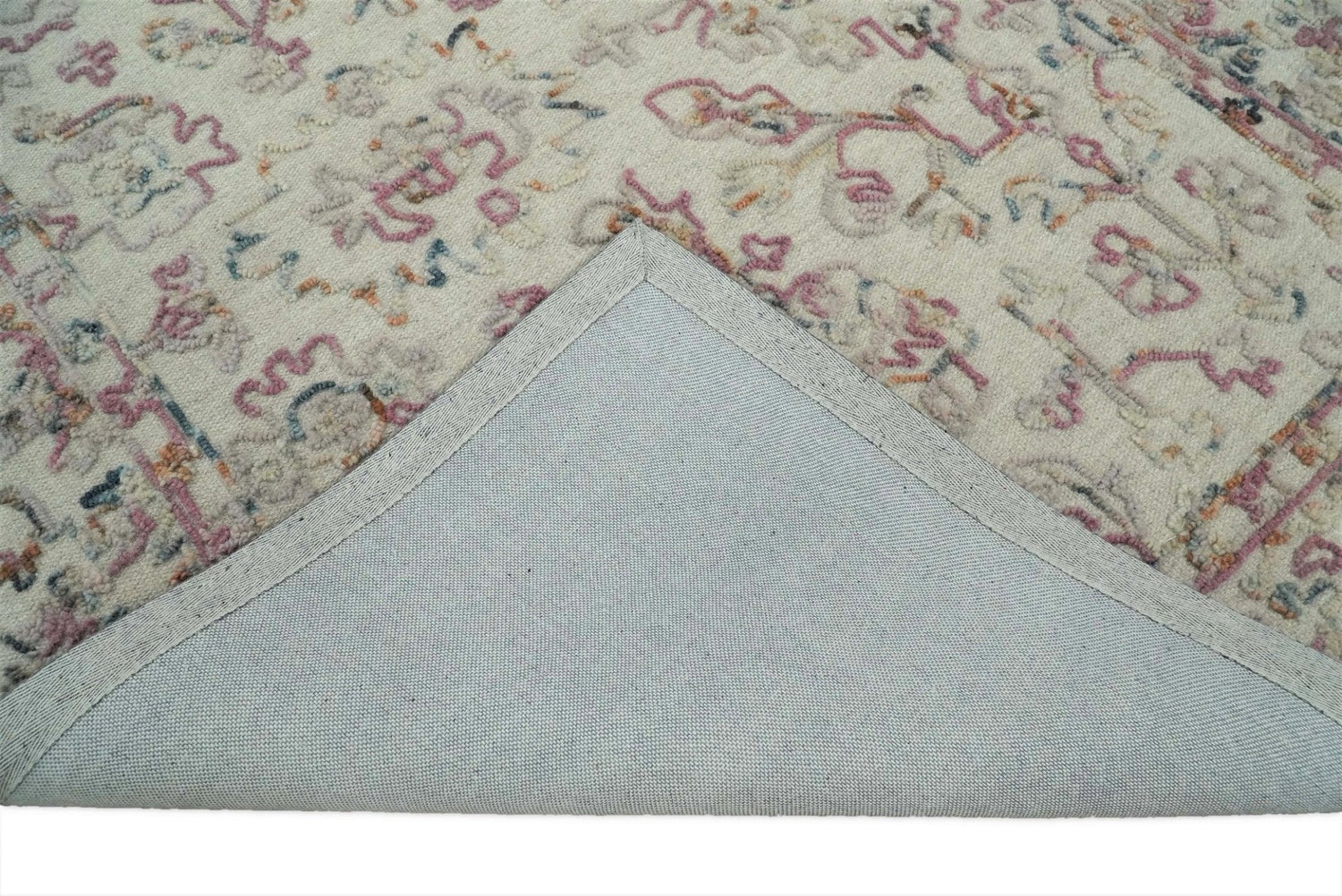 Hand Hooked 5x8 Pink and Beige Wool Textured Loop Area Rug | GAR12