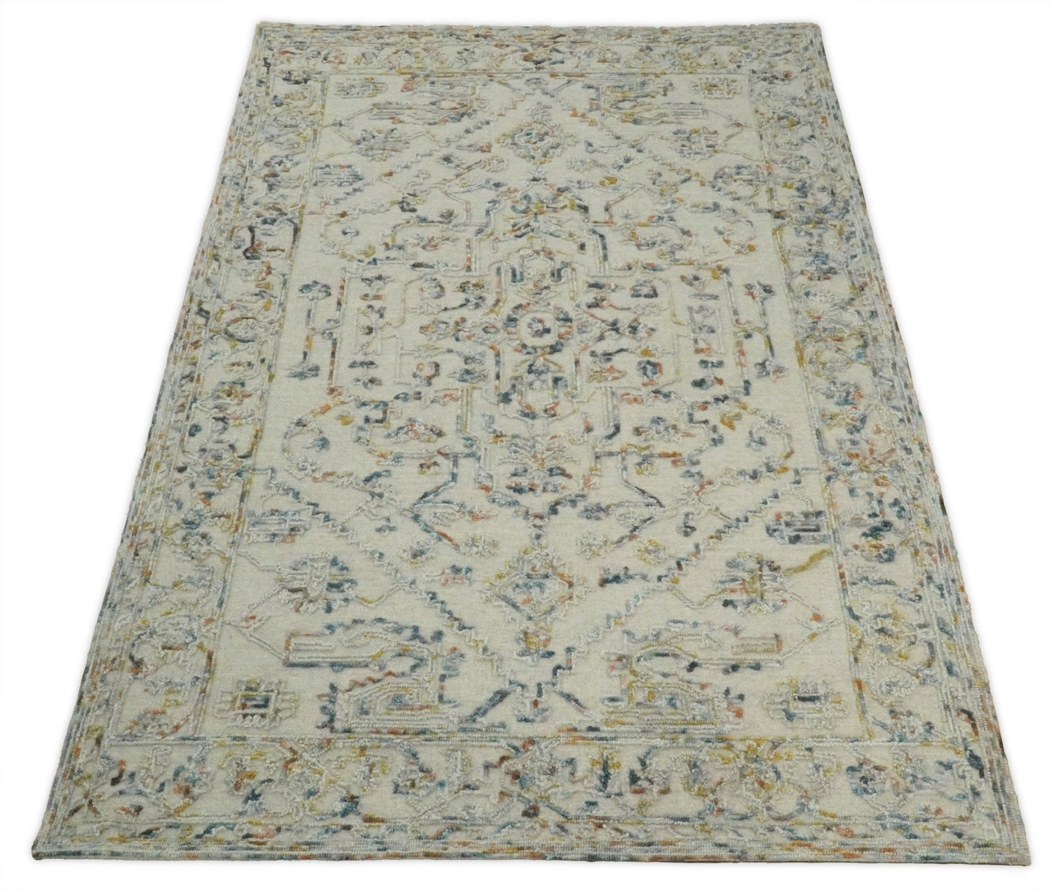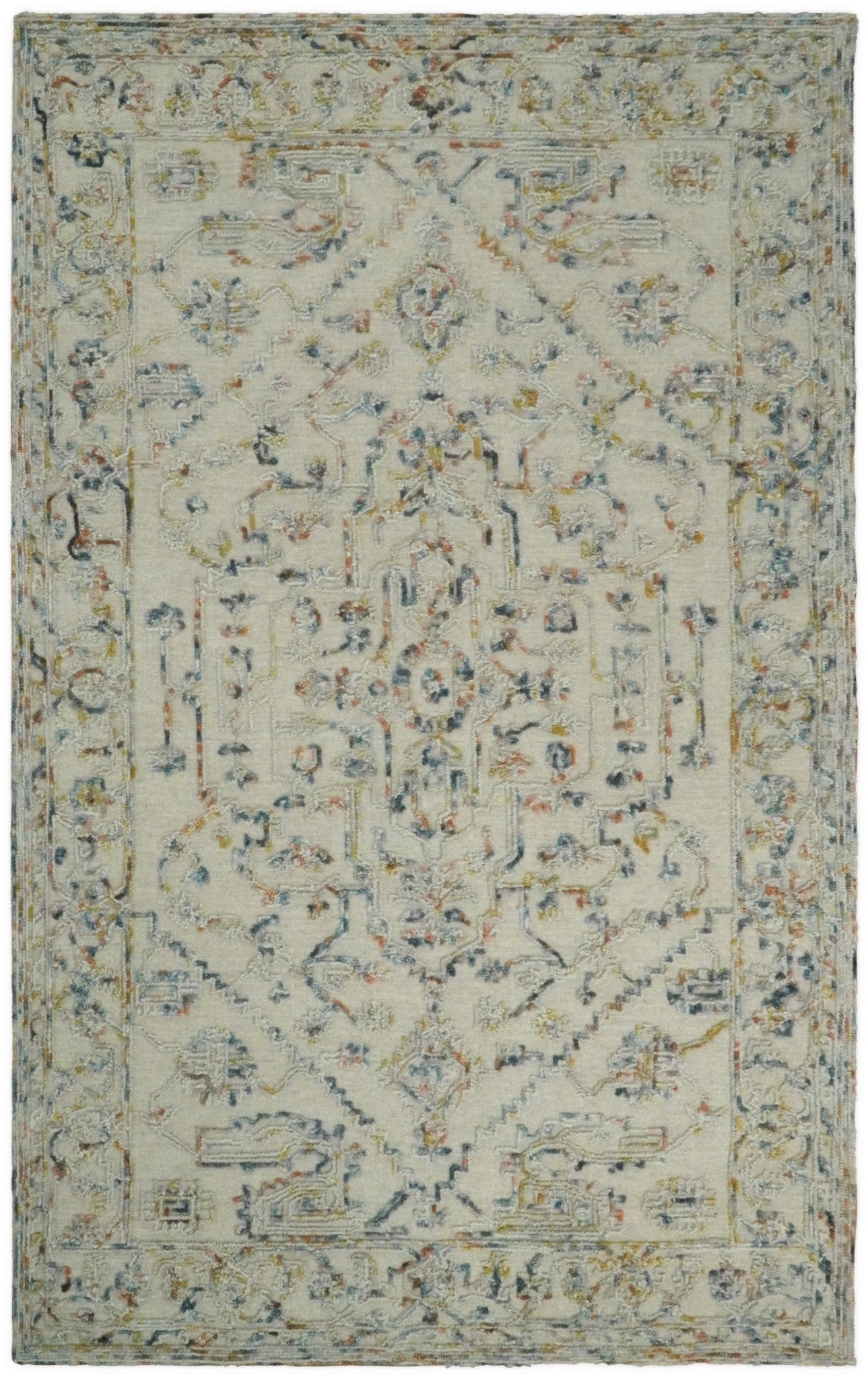 Hand Hooked 5x8 Silver and Blue Wool Textured Loop Area Rug | GAR5