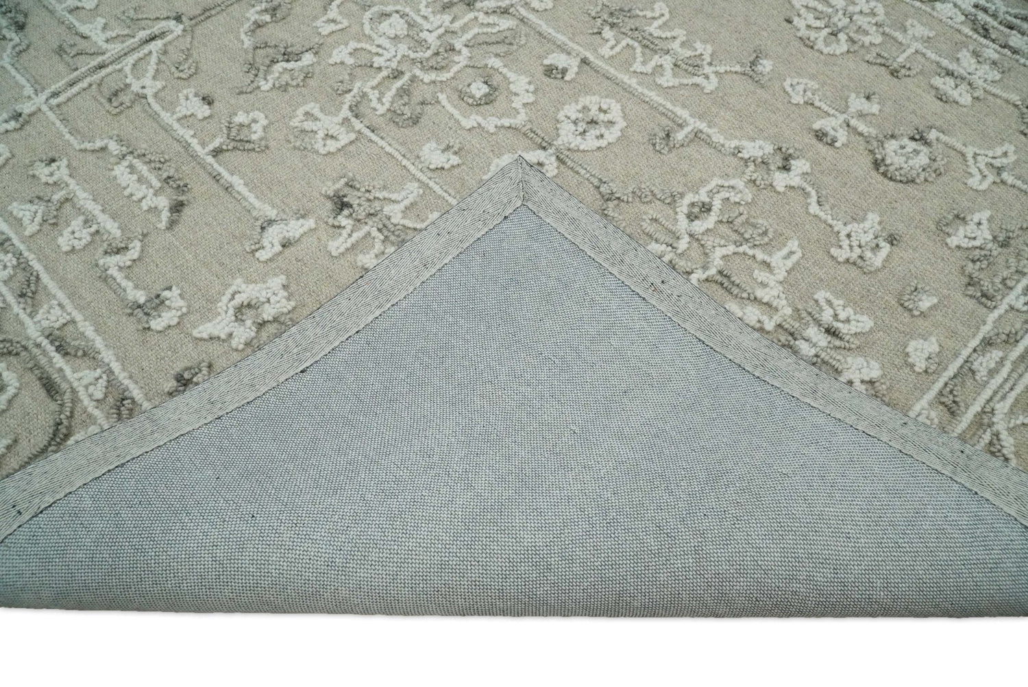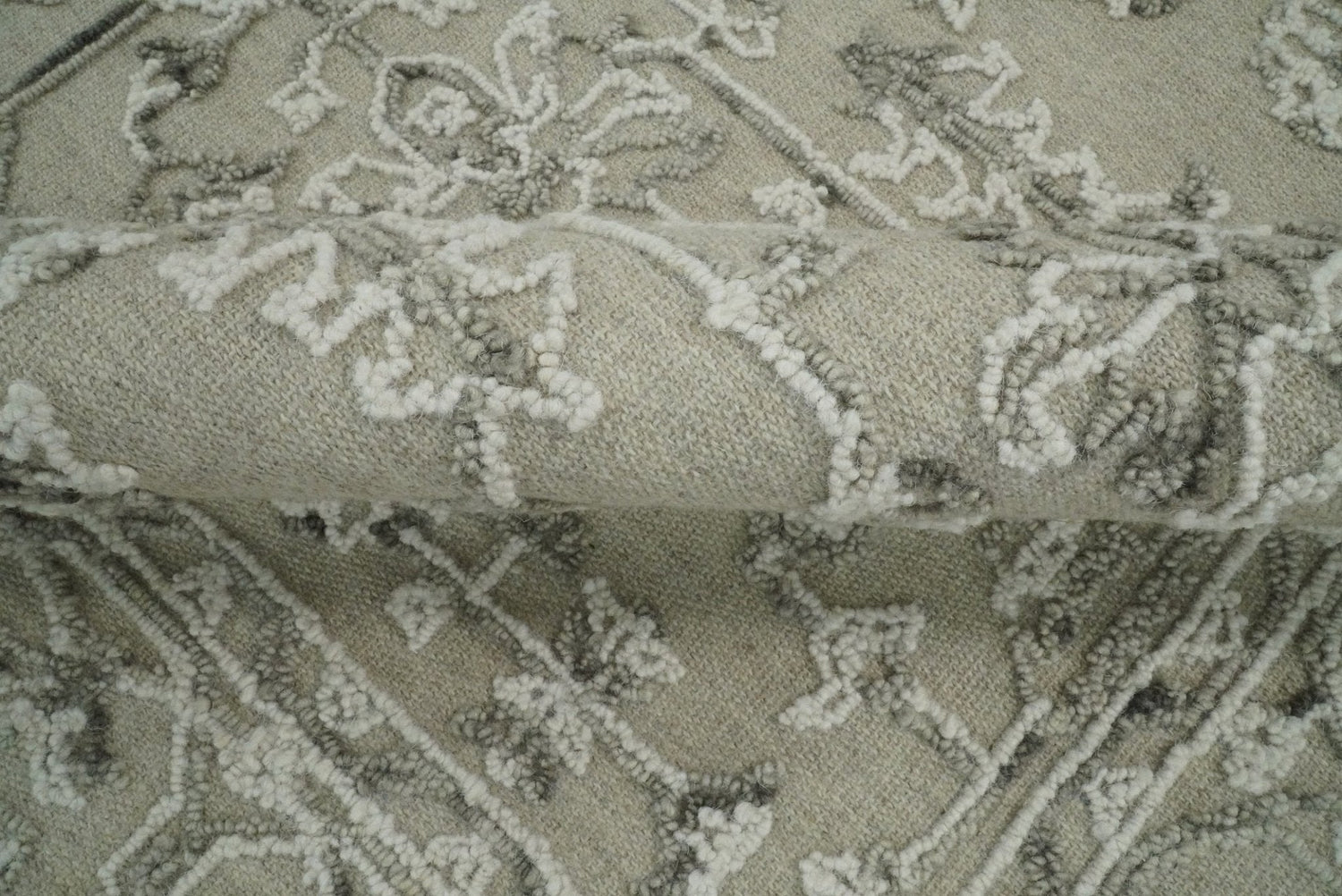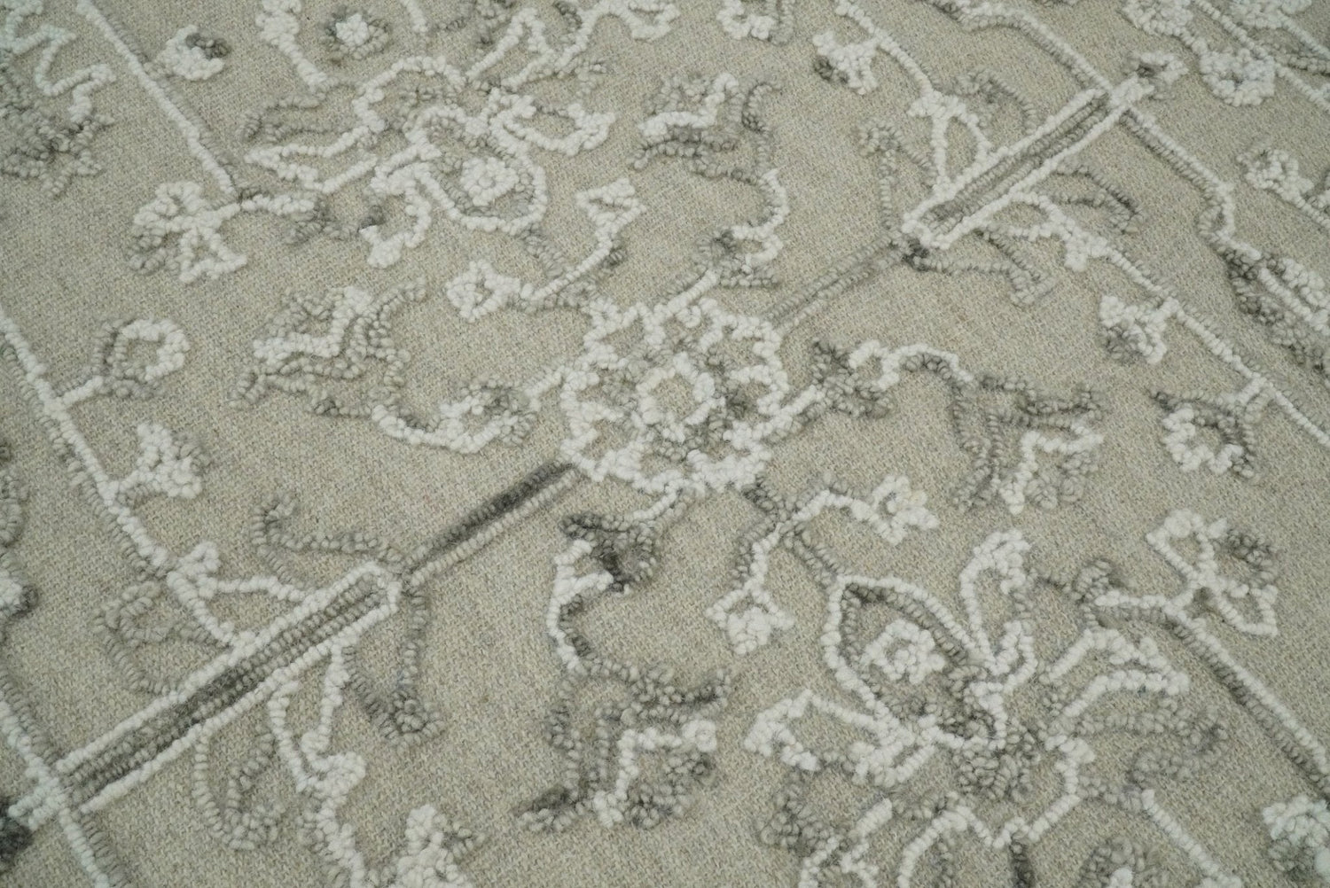 Hand Hooked 5x8 White and Gray Wool Textured Loop Area Rug | GAR9