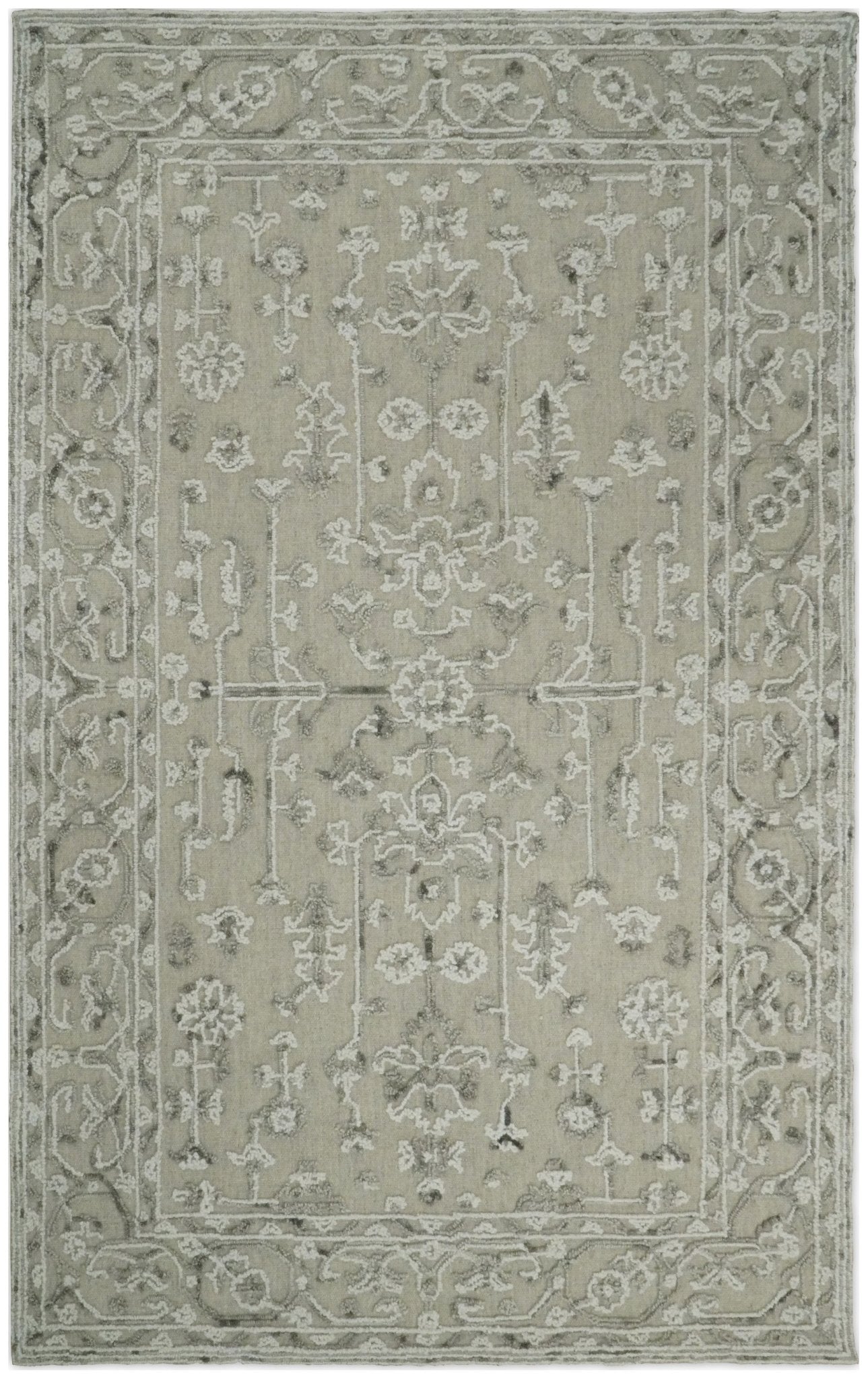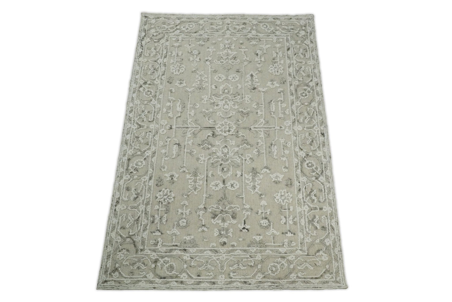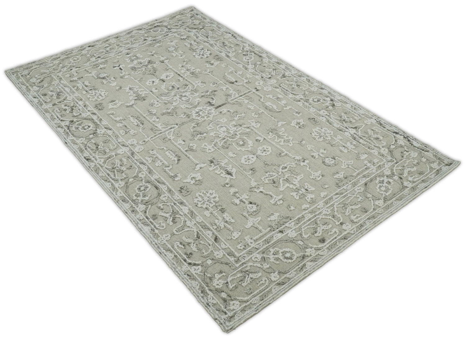 Hand Hooked 5x8 White and Gray Wool Textured Loop Area Rug | GAR9