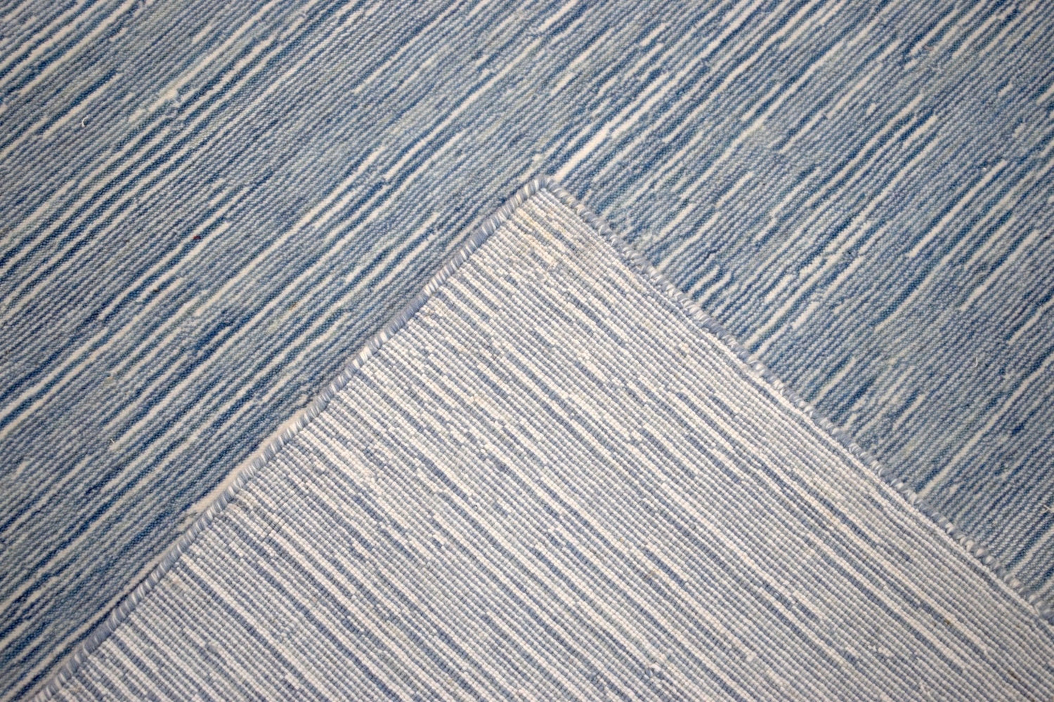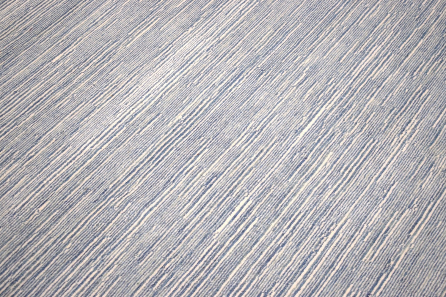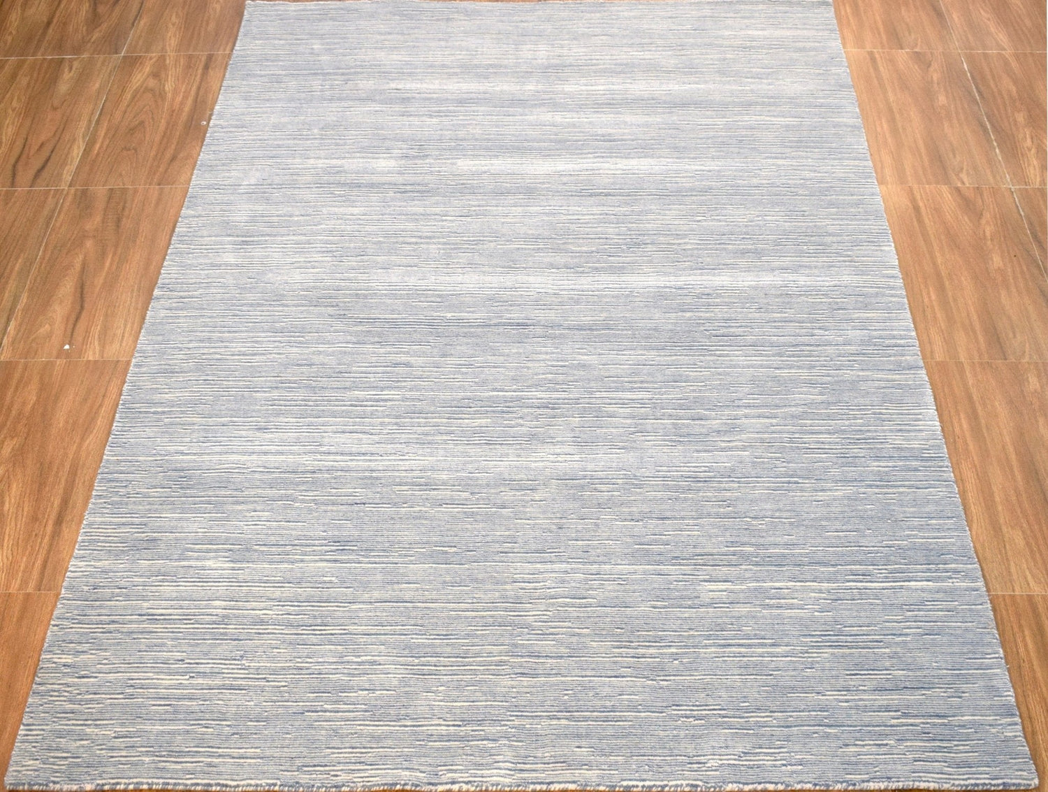 Hand Woven Blue, Ivory wool and Art Silk contemporary Area Rug