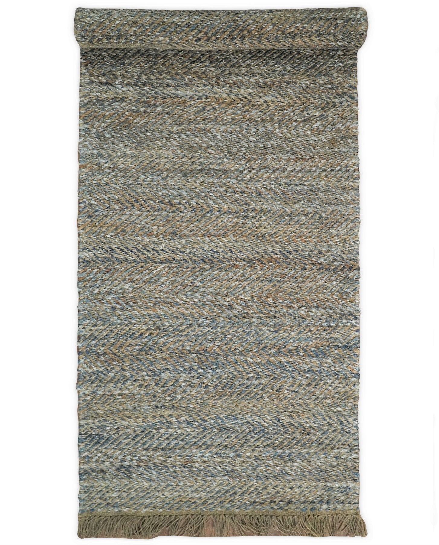 Hand Woven Natural Fiber Gray and Brown Jute and Art Silk Rug | JR9