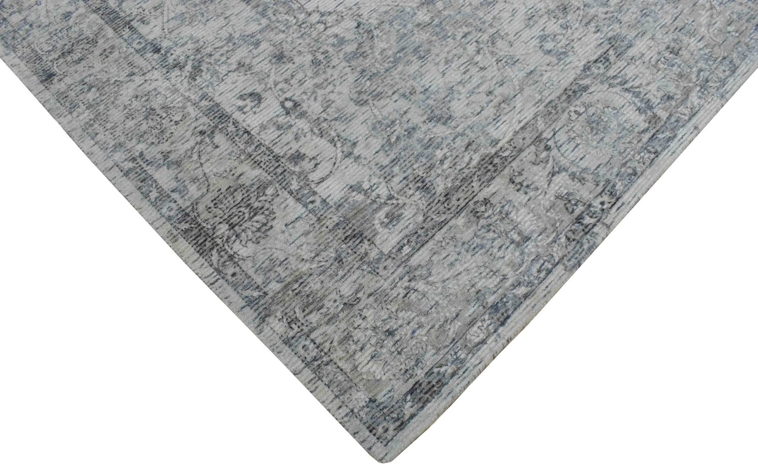 Hand Woven Wool and Art Silk Transitional Silver and Gray Rug