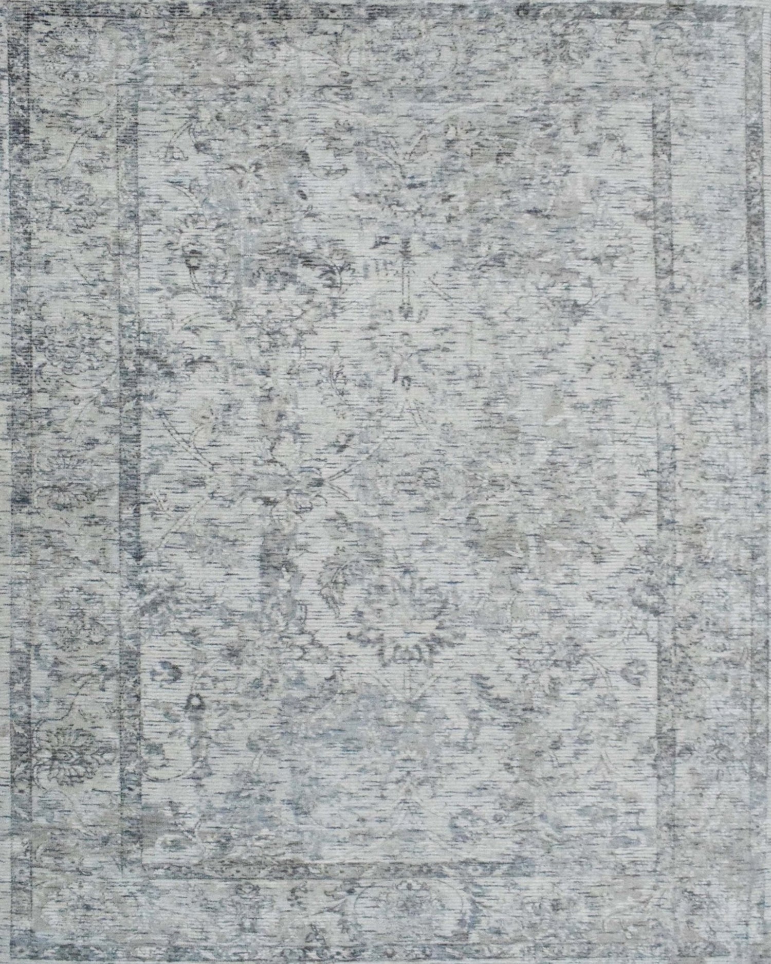 Expertly hand woven from a blend of high-quality wool and art silk, this transitional rug features a sleek and modern design in shades of silver and gray. Bring a touch of sophistication and durability to your space with this elegant piece.