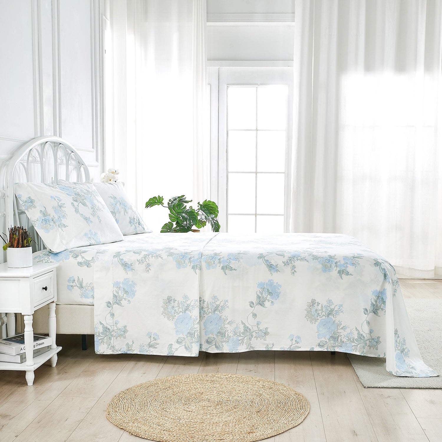 Jardin De Rose Printed Cotton Percale Sheet Set