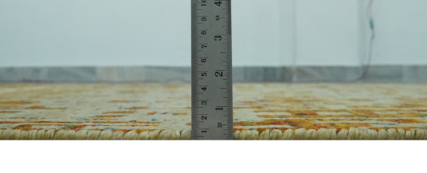 This 5x7 Modern Abstract Gold and Beige Recycled Art Silk Area Rug is a perfect addition to any contemporary space. Made from recycled materials, it adds a unique touch while also being environmentally friendly. The modern abstract design adds a touch of elegance, making it a versatile piece for any room.