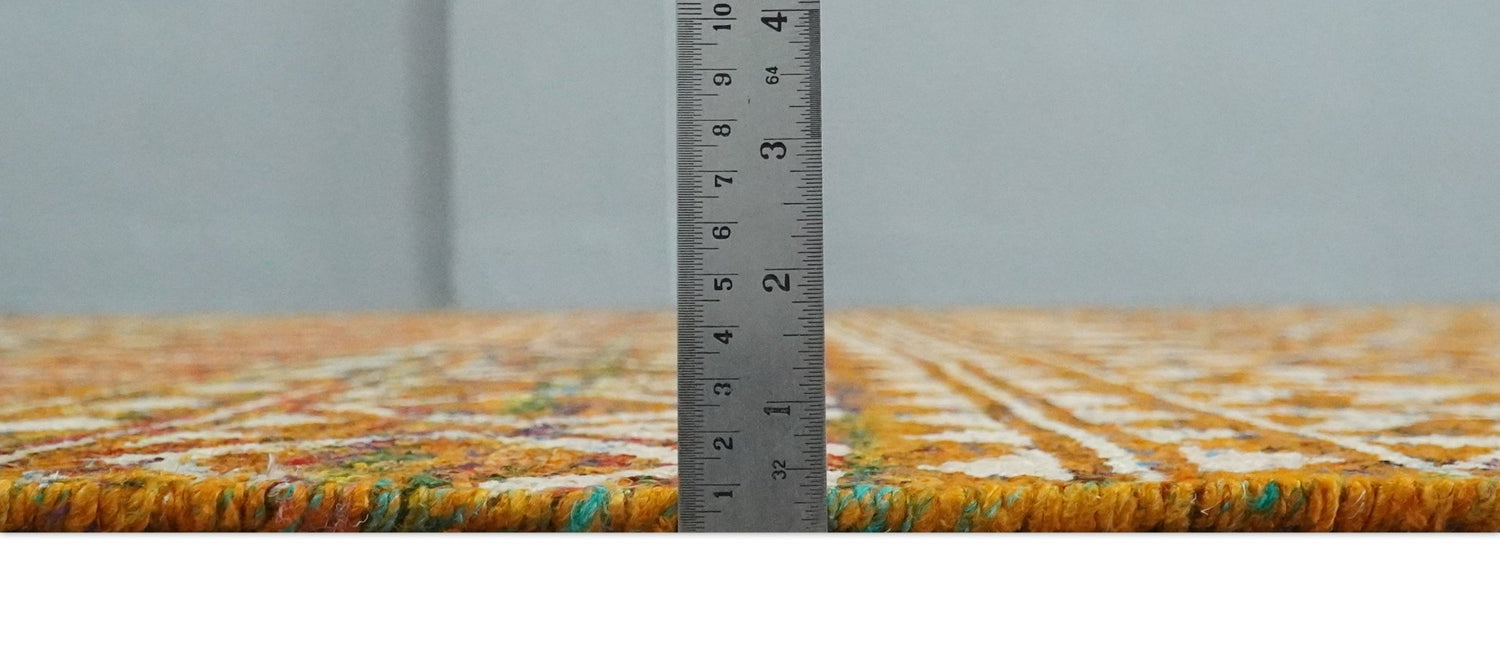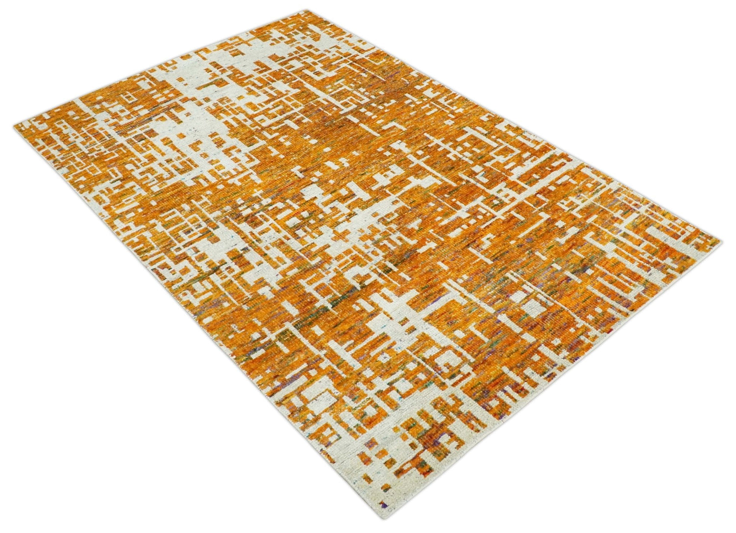 Modern Abstract 5x8 and 5.5x8.5 Gold and Ivory Recycled Art Silk Area Rug