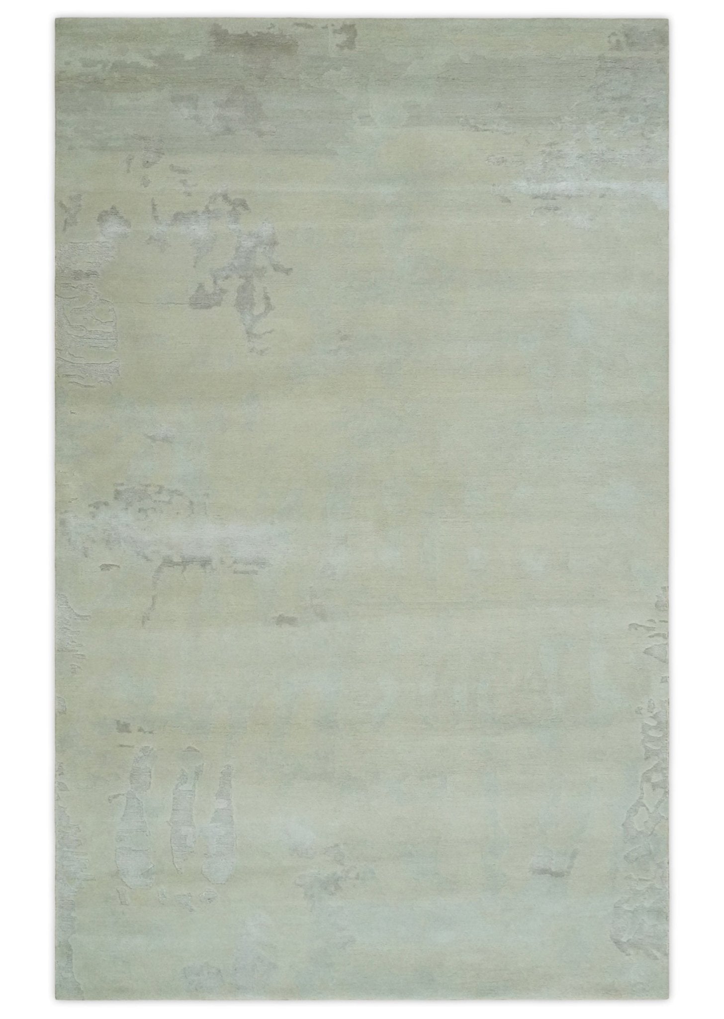 Modern Abstract Beige and Silver Hand loom 5x8 wool and Art Silk Area Rug