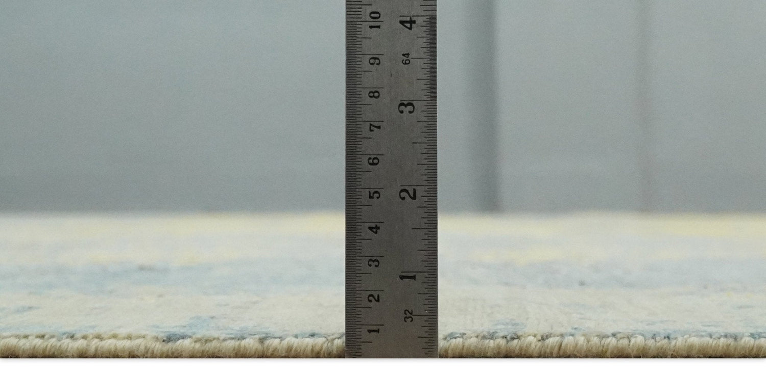 This exquisite rug features a harmonious blend of soft blues and gentle yellows, reminiscent of a tranquil sky at dusk. Intricately woven, it boasts an abstract pattern that evokes a painterly brushstroke effect, creating a sense of fluid movement and texture. Its luxurious weave captures light gracefully, adding depth and sophistication to any space. Perfect for a luxury setting, this rug transforms floors into canvases of contemporary elegance and understated opulence.
