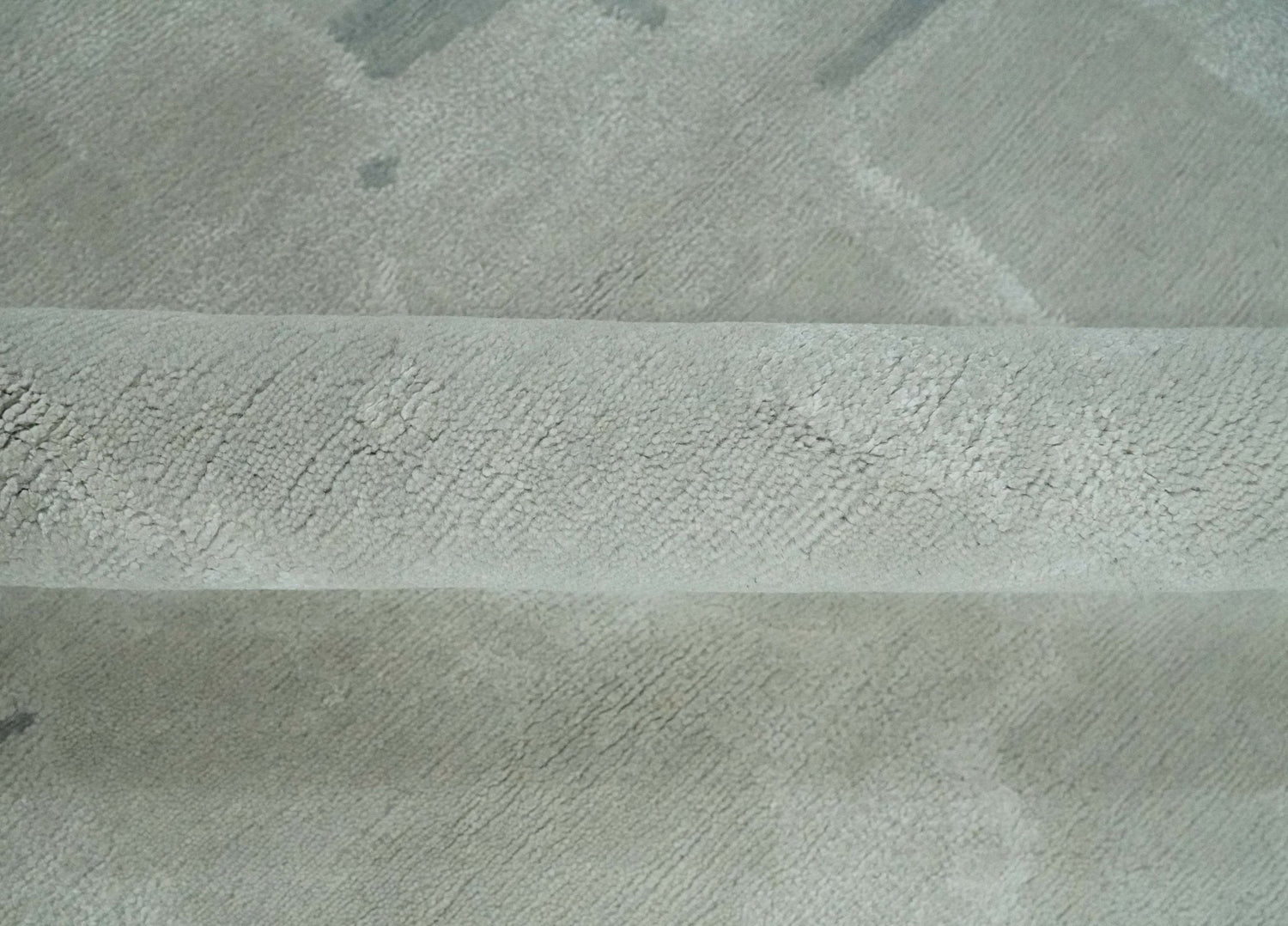 Modern Abstract Silver And Gray Hand knotted Art Silk Area Rug