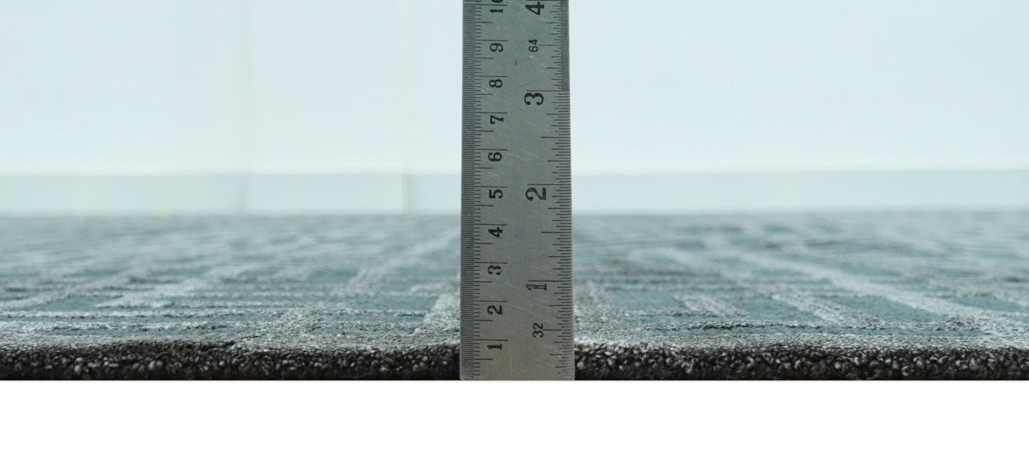 Modern Geometric Design Dark Teal And Silver 8x10 Hand Knotted Wool And Art Silk Rug