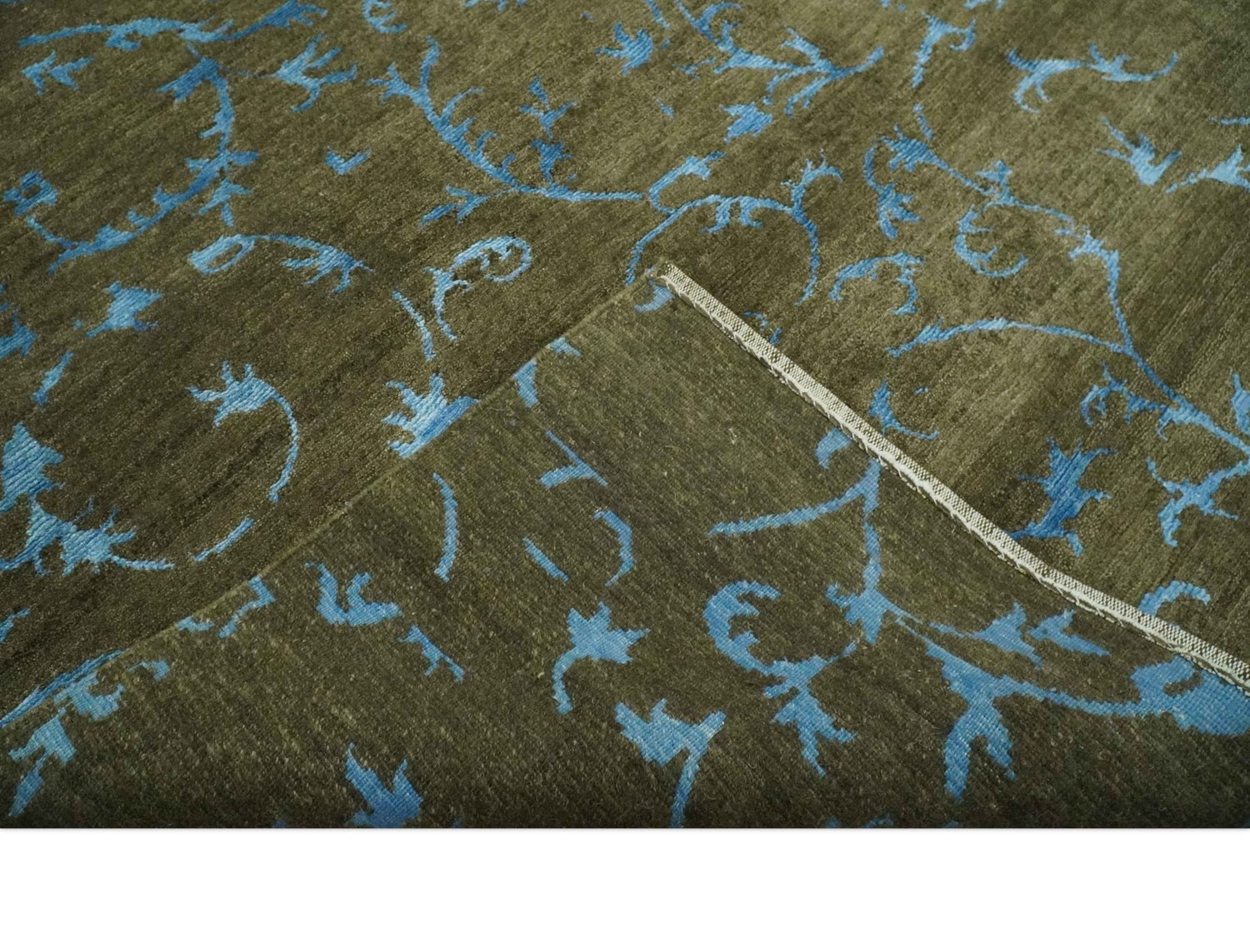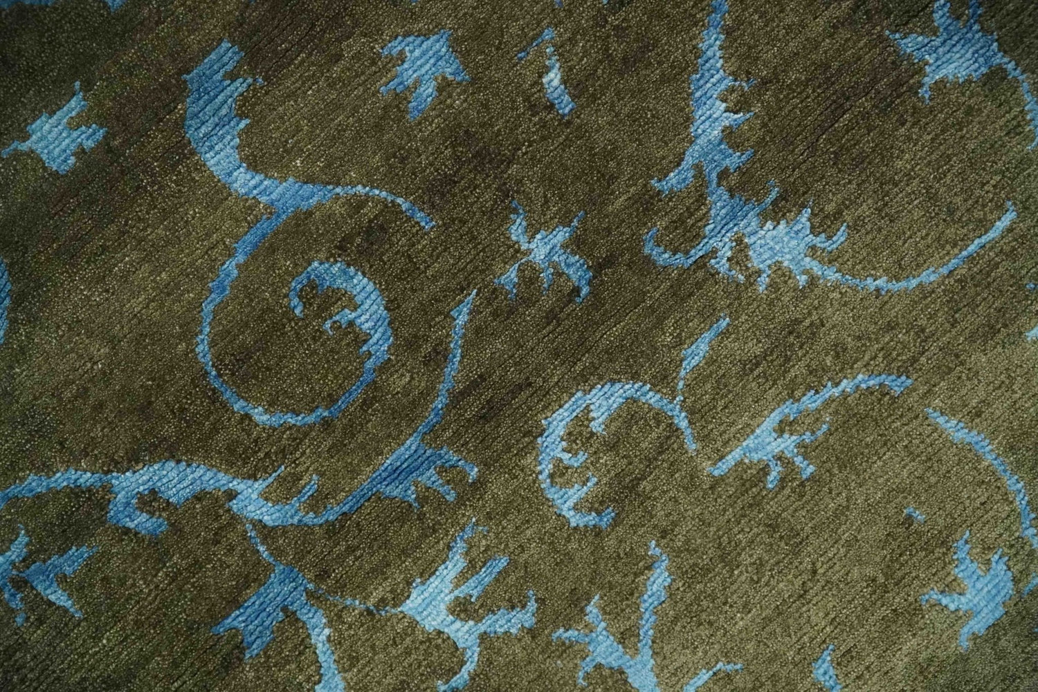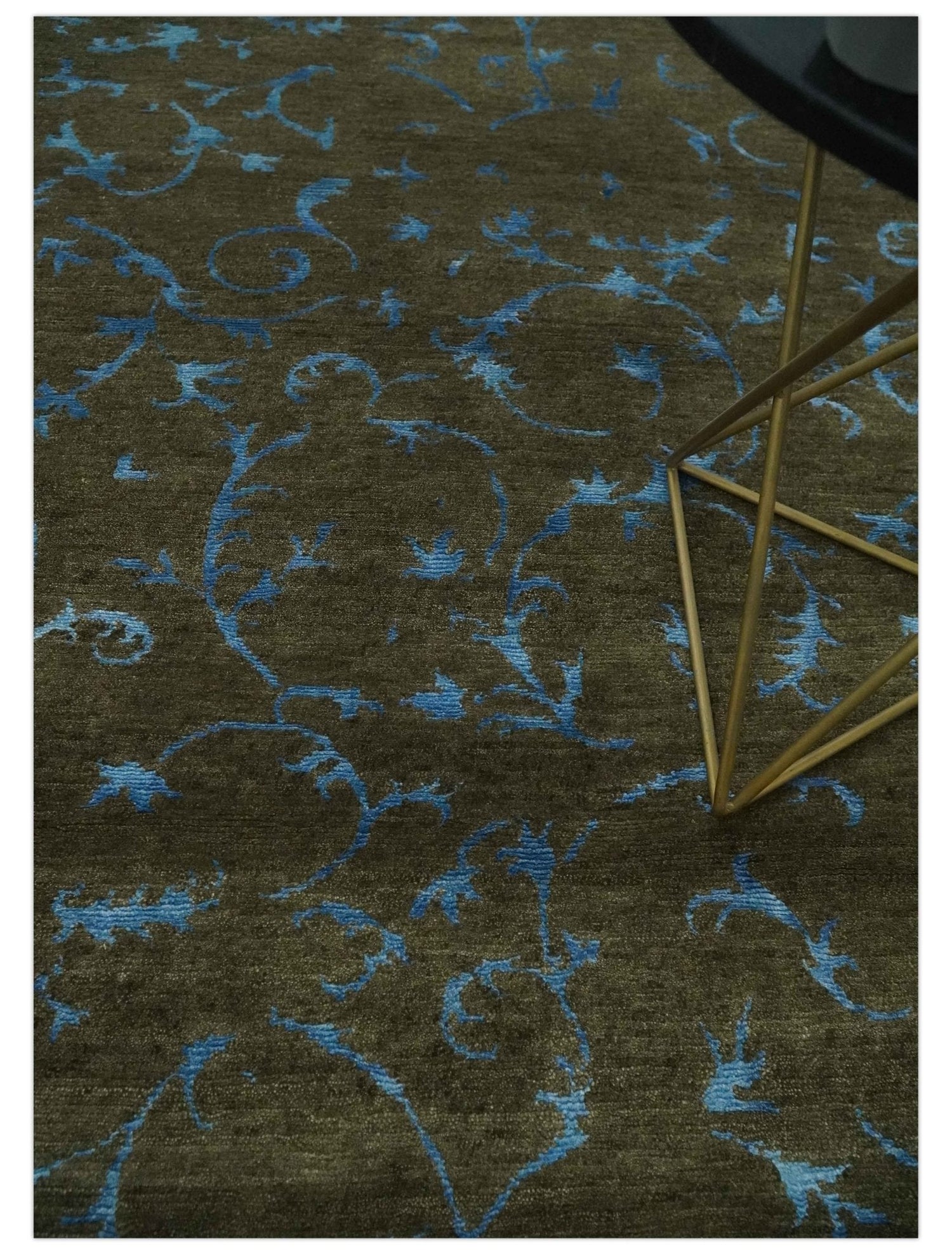 Premium look Antique Style Olive and Blue Hand loom 6x9 wool and Art Silk Area Rug