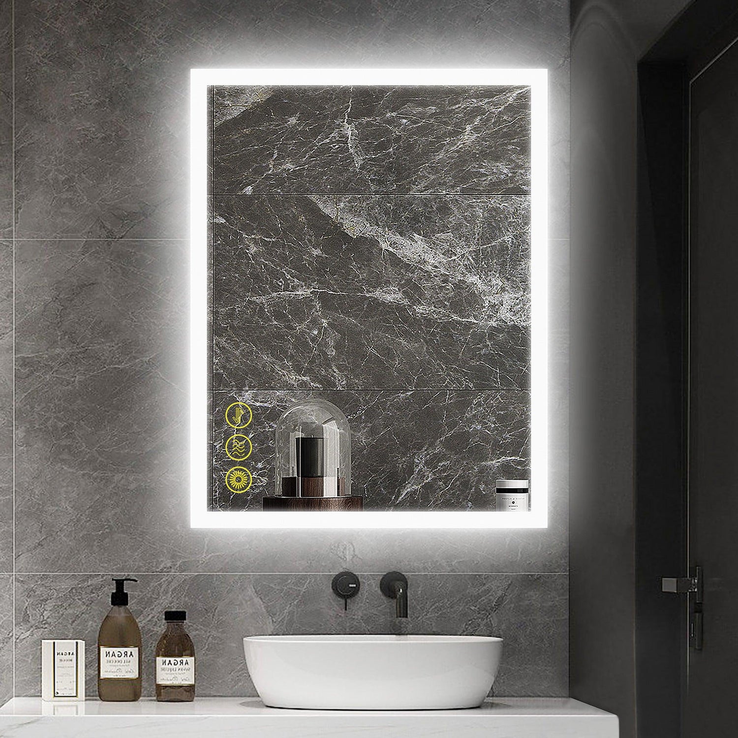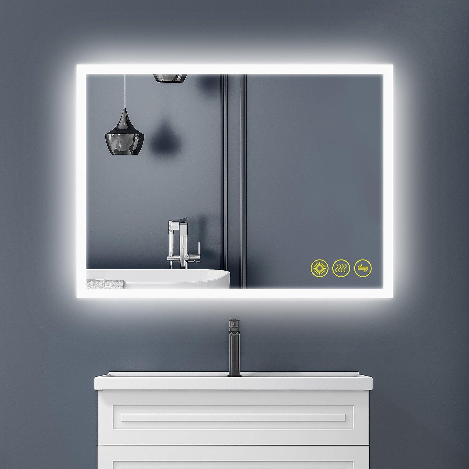 LED bathroom mirror is modernly designed with frameless frosted edges, not only gently shining on your beautiful face, but also adding artful details to your space.
