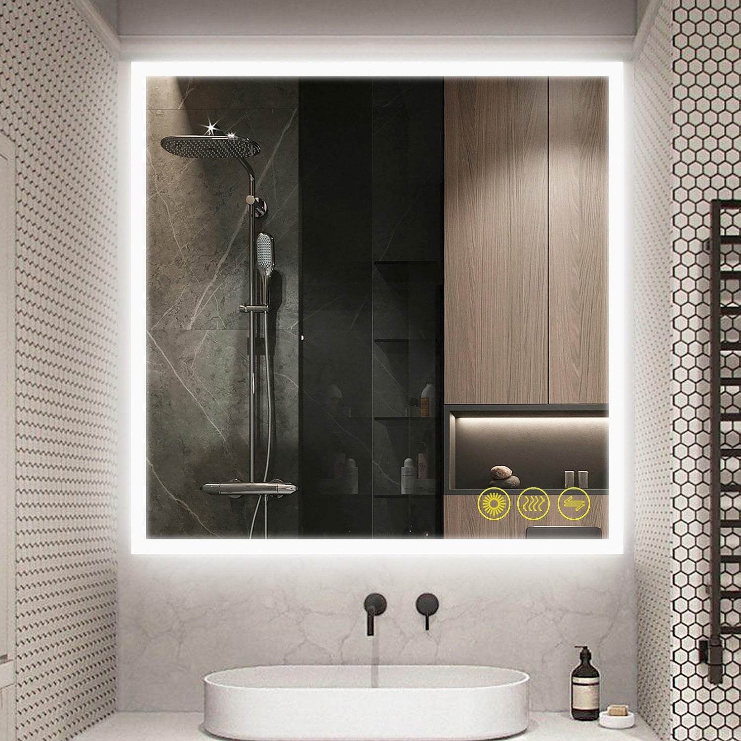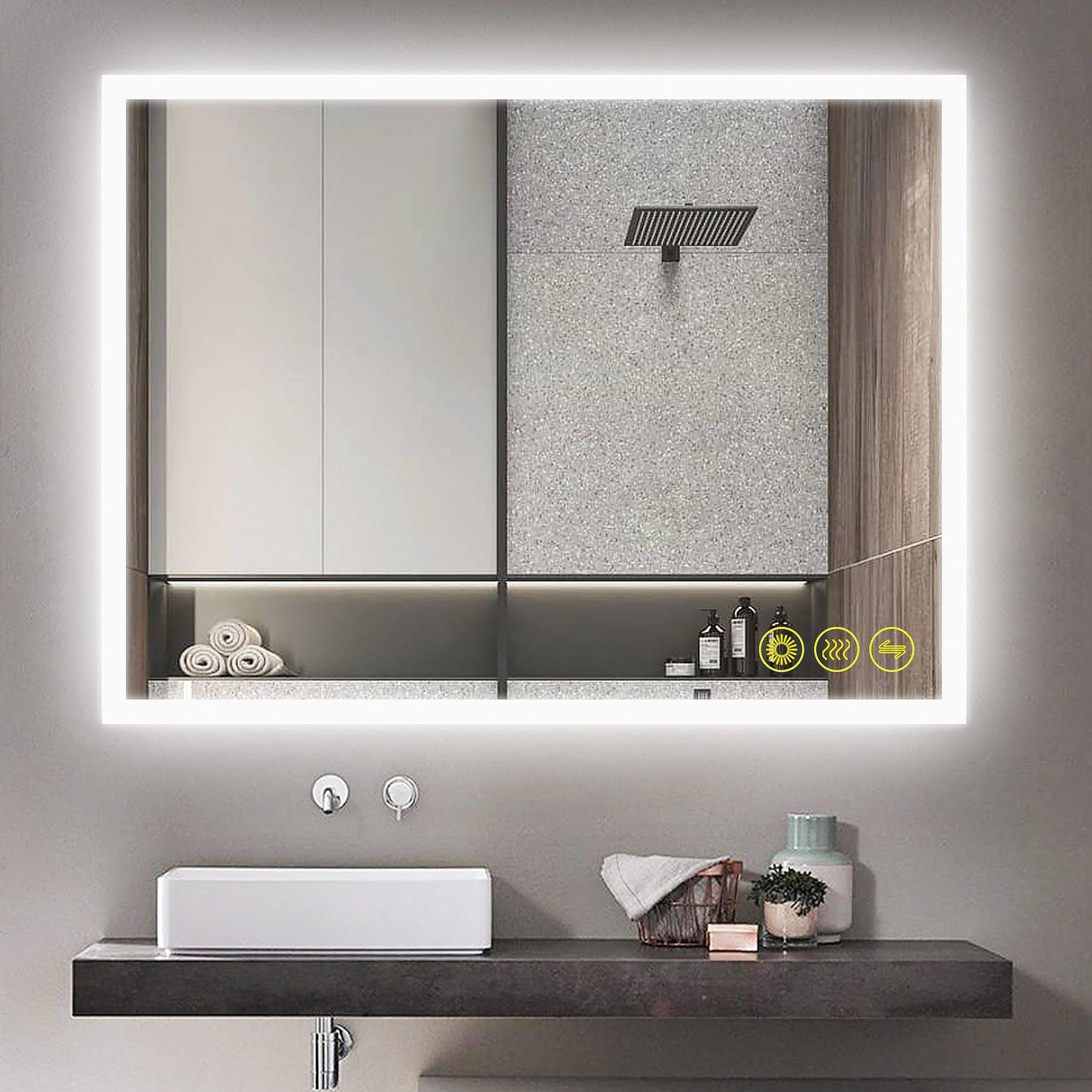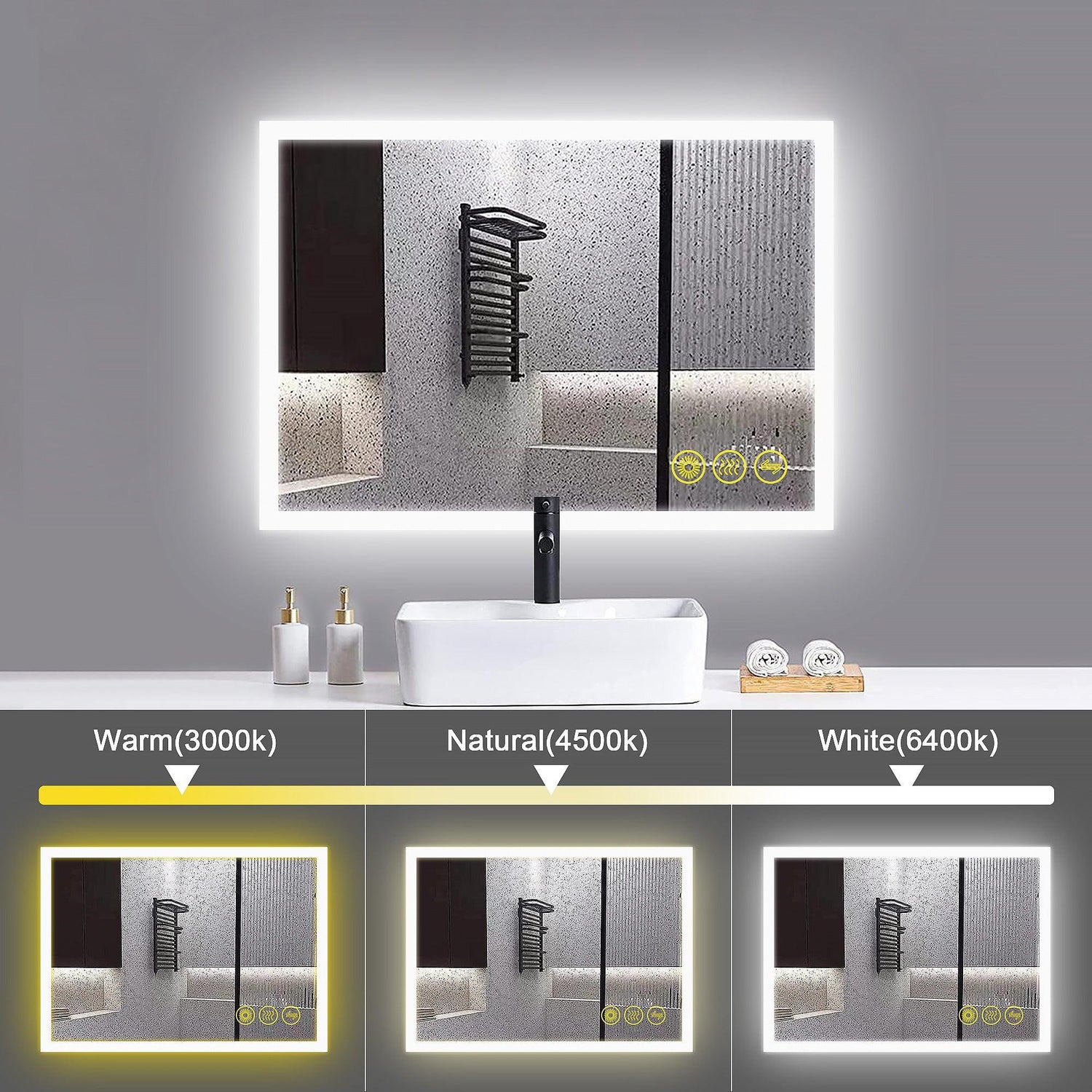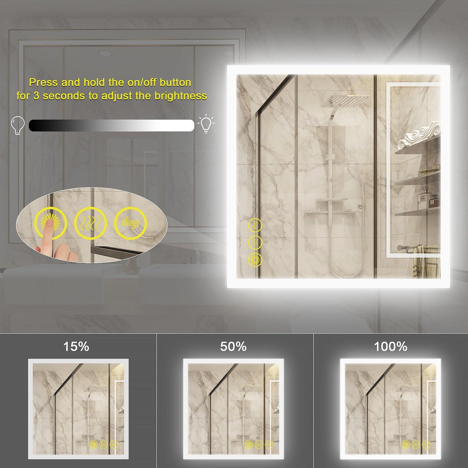 【Anti Fog】 : Defogger is separately controlled by a touch switch. Turn it on/off according to your needs. Low power consumption, safe, and energy-saving.