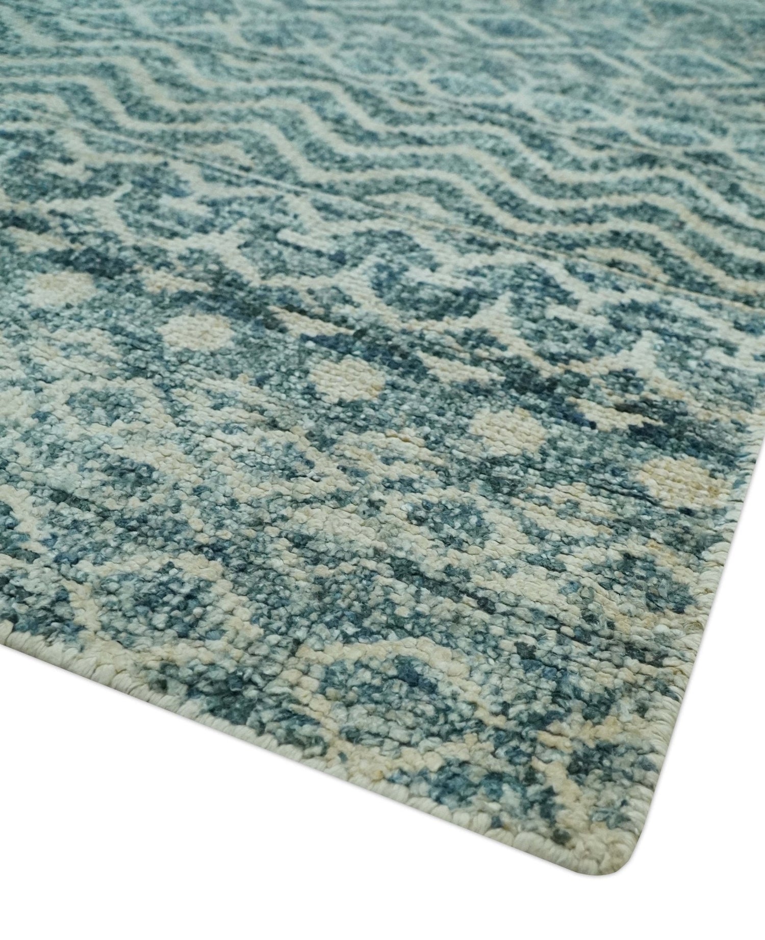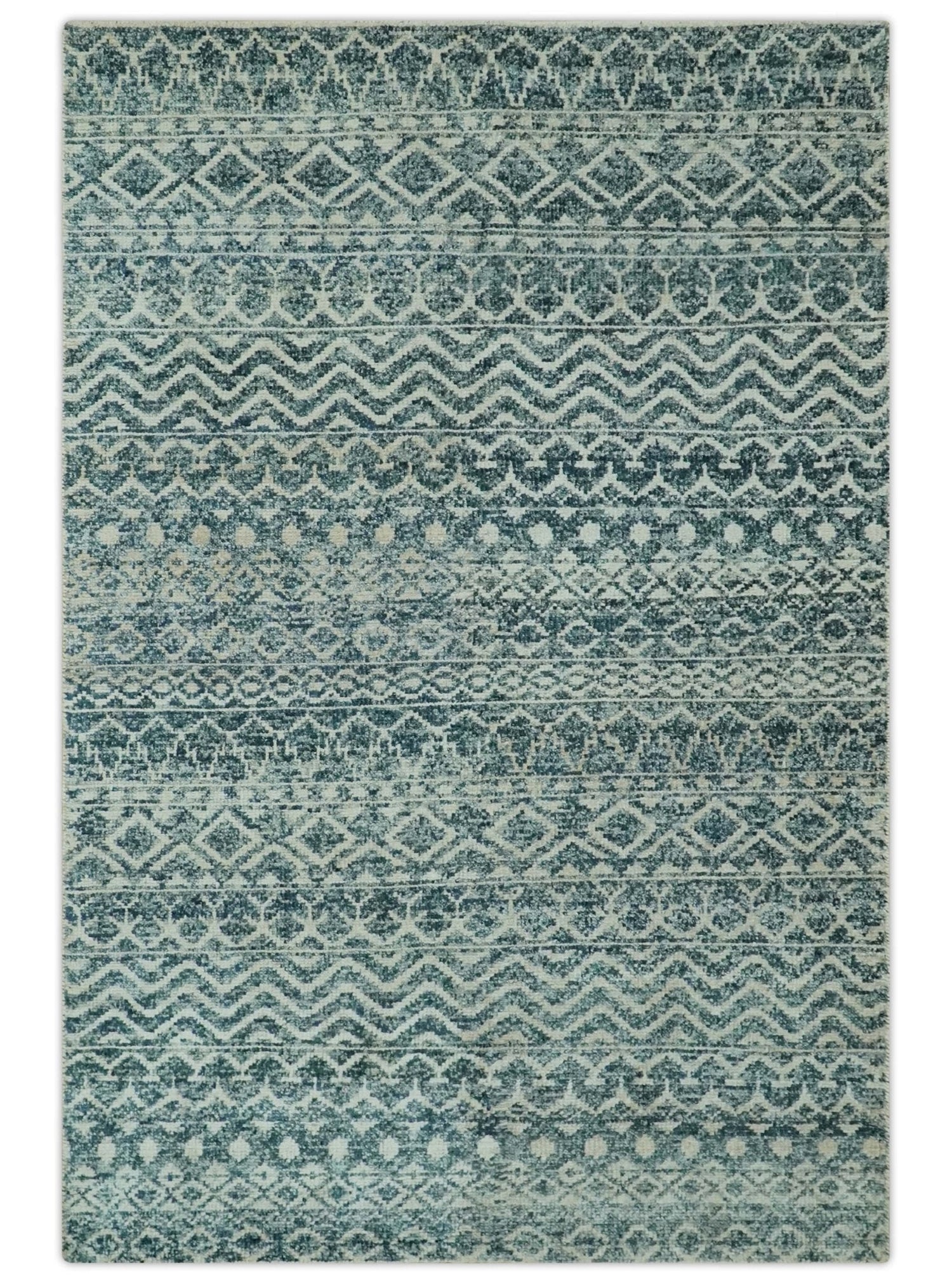Teal and Ivory 5.6x8.6 Southwestern Tribal Trellis Recycled Art Silk Area Rug