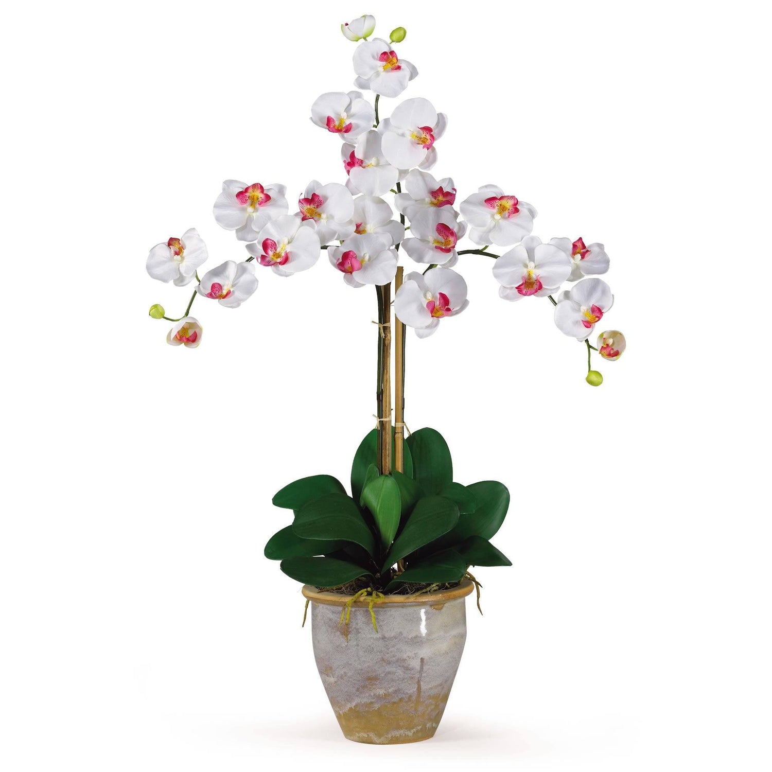 Looking for the perfect orchid with absolutely no maintenance? The 27” triple stem phalaenopsis is a classic orchid to be enjoyed by all, even the most discriminating customer. Each silk plant comes with three beautiful phalaenopsis stems each with 6 flowers and 2 buds. Finished with a gorgeous glazed ceramic vase designed to coordinate with any décor, this beauty will bring color and life into any space.