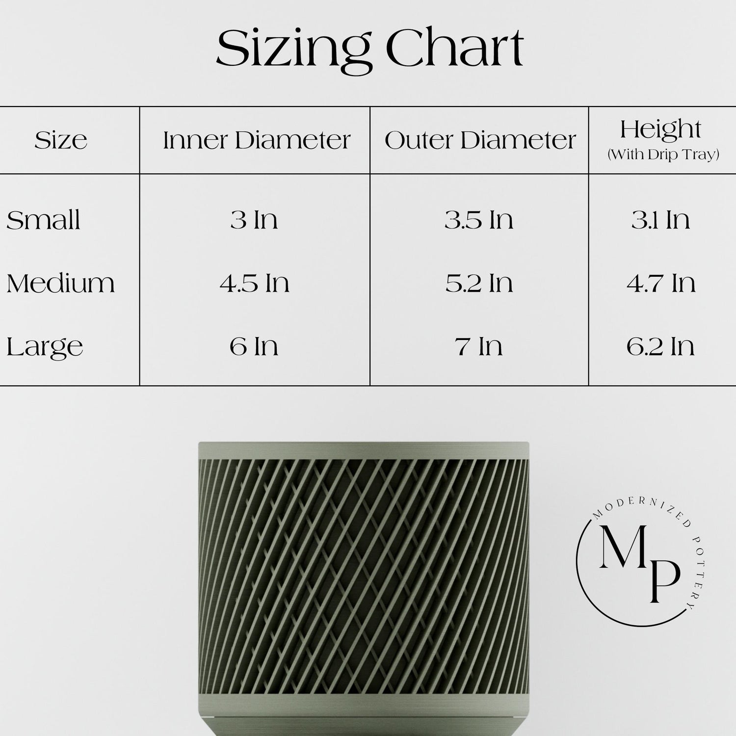 - Large: Height: 6.2 inches | Width: 7 inches | Depth: 7 inches | Opening 6 Inches