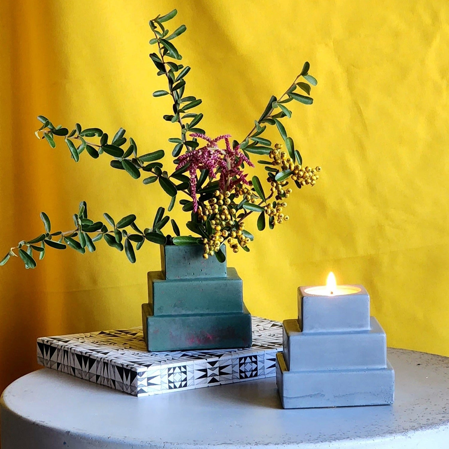 Create two organic wax candles bespoke to your nose, custom to your taste. The Ziggurat is an experience. With its 8 essential oils, you get to design your perfect fragrance. After you burn one candle in the chic concrete, you get to do it all over again. Afterwards the concrete sculpture makes it a great succulent planter, brush holder or whatever you want. So unwind, and customize your happy place with this candle staycation.