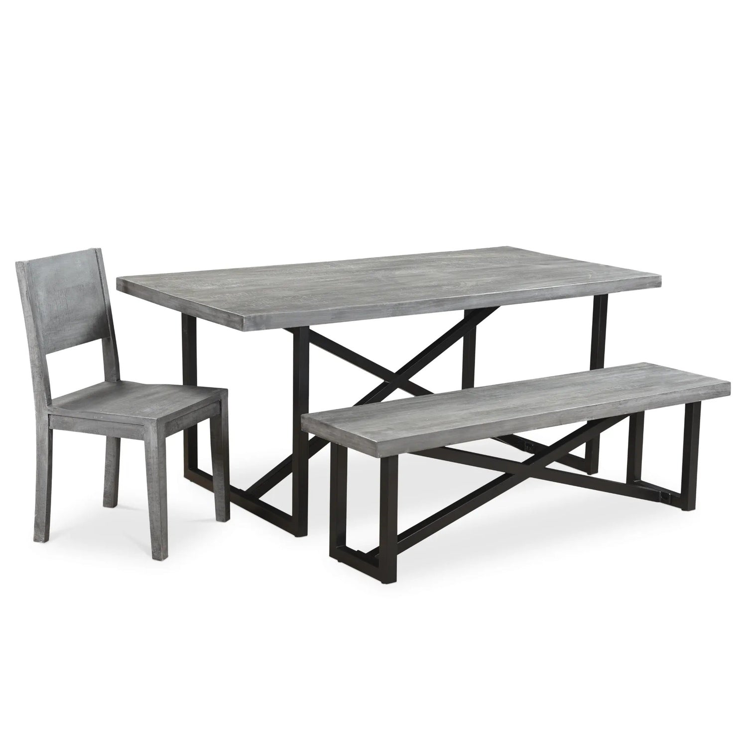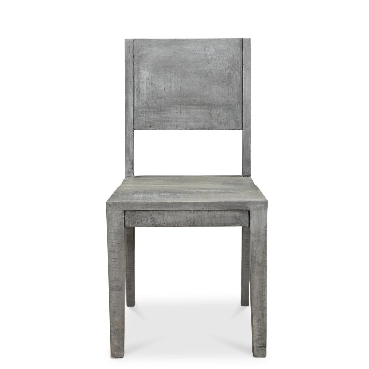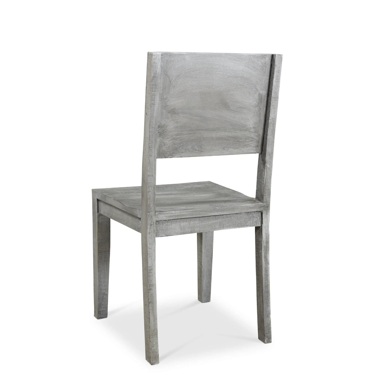 This dining chair is crafted from sturdy mango wood and features a contemporary design. The Lagos grey finish and use of handpicked rough sawn wood give each chair a rustic, organic appeal while retaining natural characteristics.