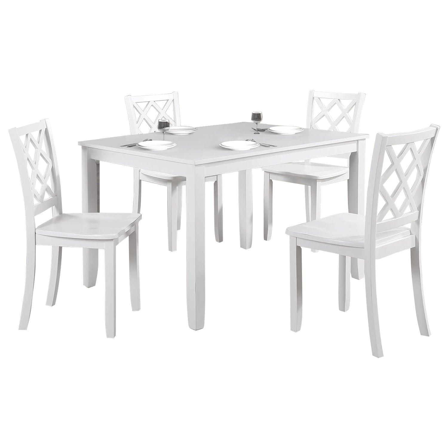 48"W Solid Rubberwood 5-Piece Dining Table Set with Diamond Chair Back