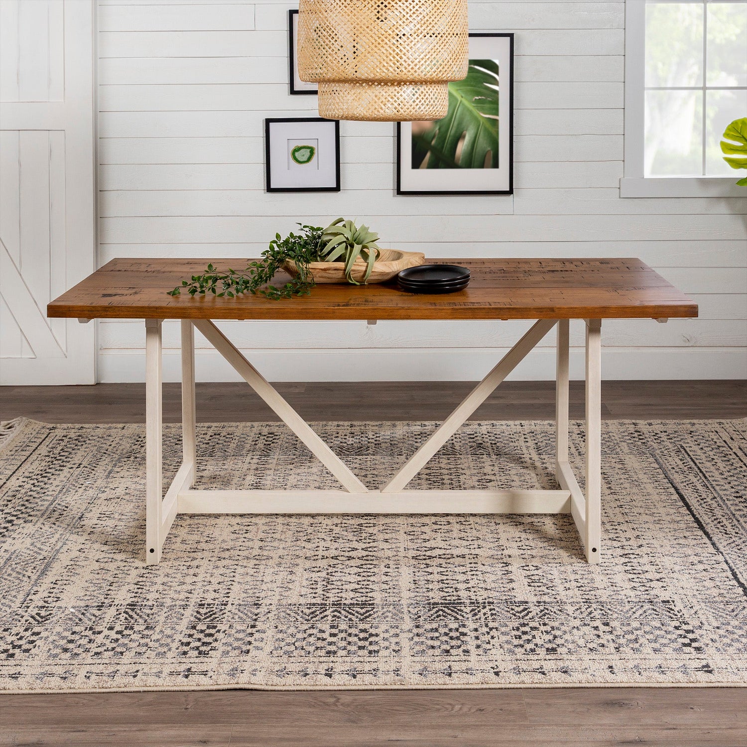 The Brennan Solid Wood Trestle Dining Table combines a robust solid pine wood frame with a two-toned finish that highlights its rustic character. Its distressed rectangular top paired with a trestle leg design creates a functional yet inviting centerpiece suitable for both kitchen and dining spaces. Crafted from responsibly harvested wood, this table comfortably seats six and complements farmhouse-style interiors while offering sturdy support for everyday use.