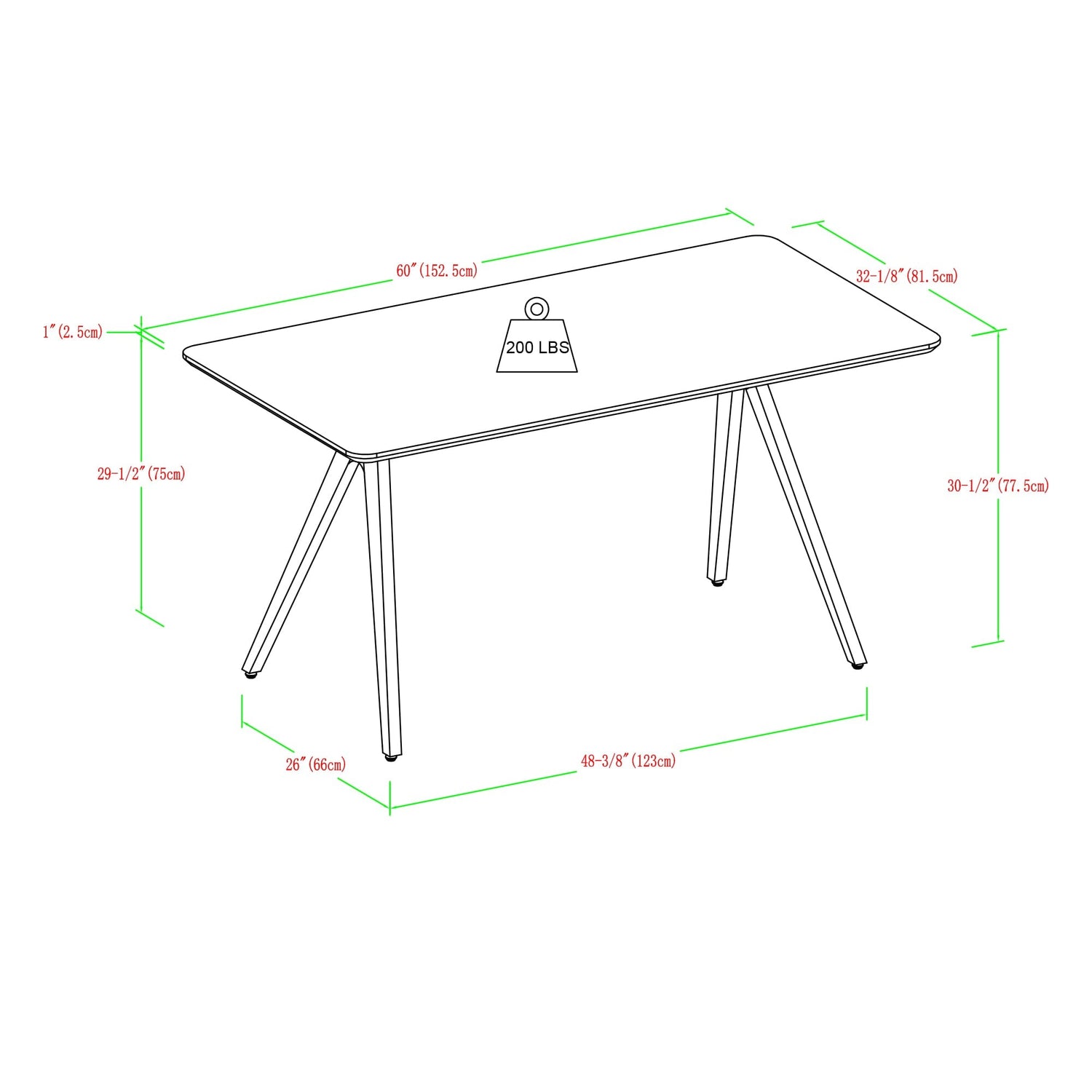 The Garret 60" Modern Industrial Dining Table combines a smooth veneer tabletop with a sturdy metal frame, offering a refined balance of warmth and durability. Its V-shaped metal legs provide both stability and a distinctive architectural silhouette, making it a versatile centerpiece for dining, work, or leisure. Designed for easy assembly and mobility, it adapts effortlessly to various spaces.