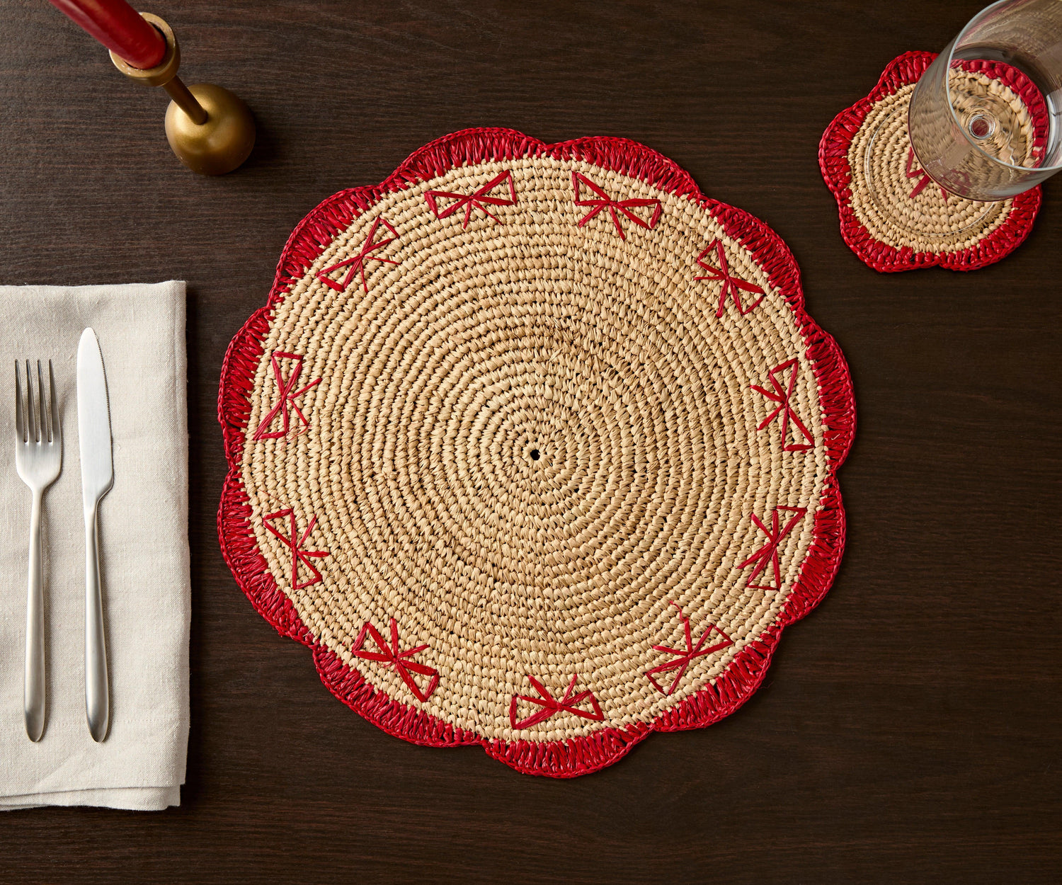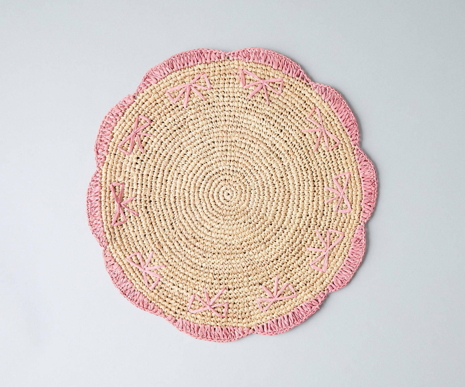 Payton James Handwoven Bow Placemats – Hand-Crocheted Raffia Palm Placemats – Unique Kitchen & Dining Table Decor – Handmade Tableware
