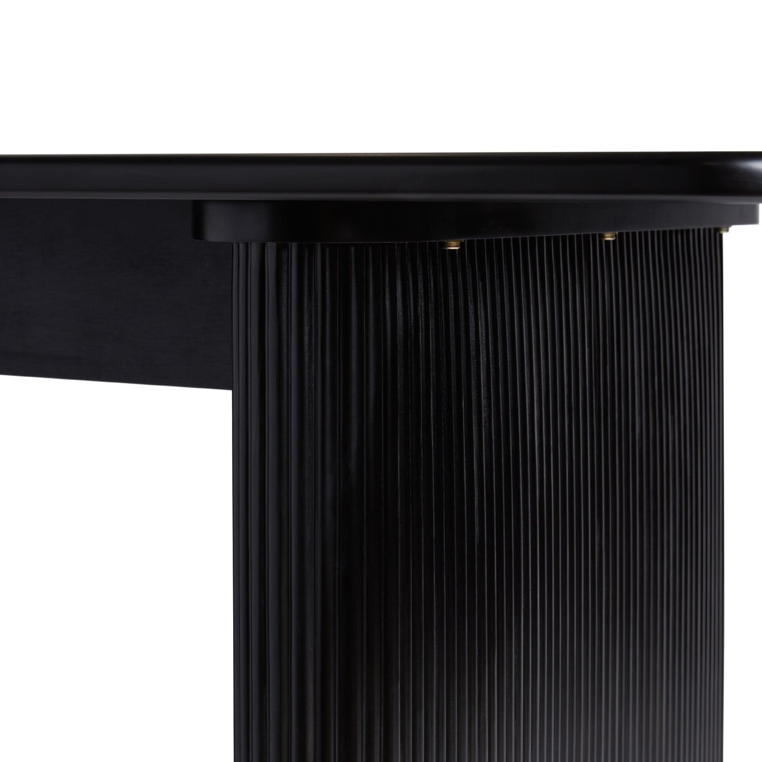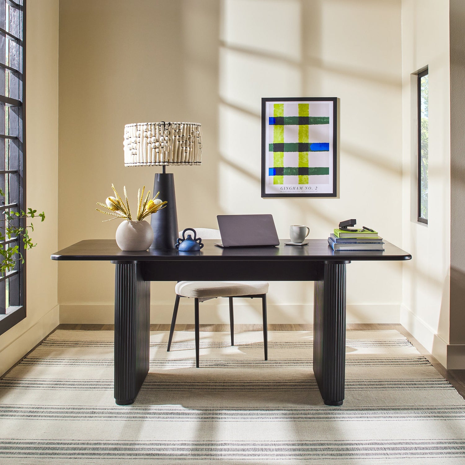 The Reema Heath Scandinavian Dining Table and Desk features a refined design with two curved bases wrapped in vertical reeding, crafted from natural-looking birch wood veneer that adds warmth and subtle texture to your space. Its 68-inch surface offers ample room for seating six to eight people comfortably, making it versatile for dining, working, or creative activities.