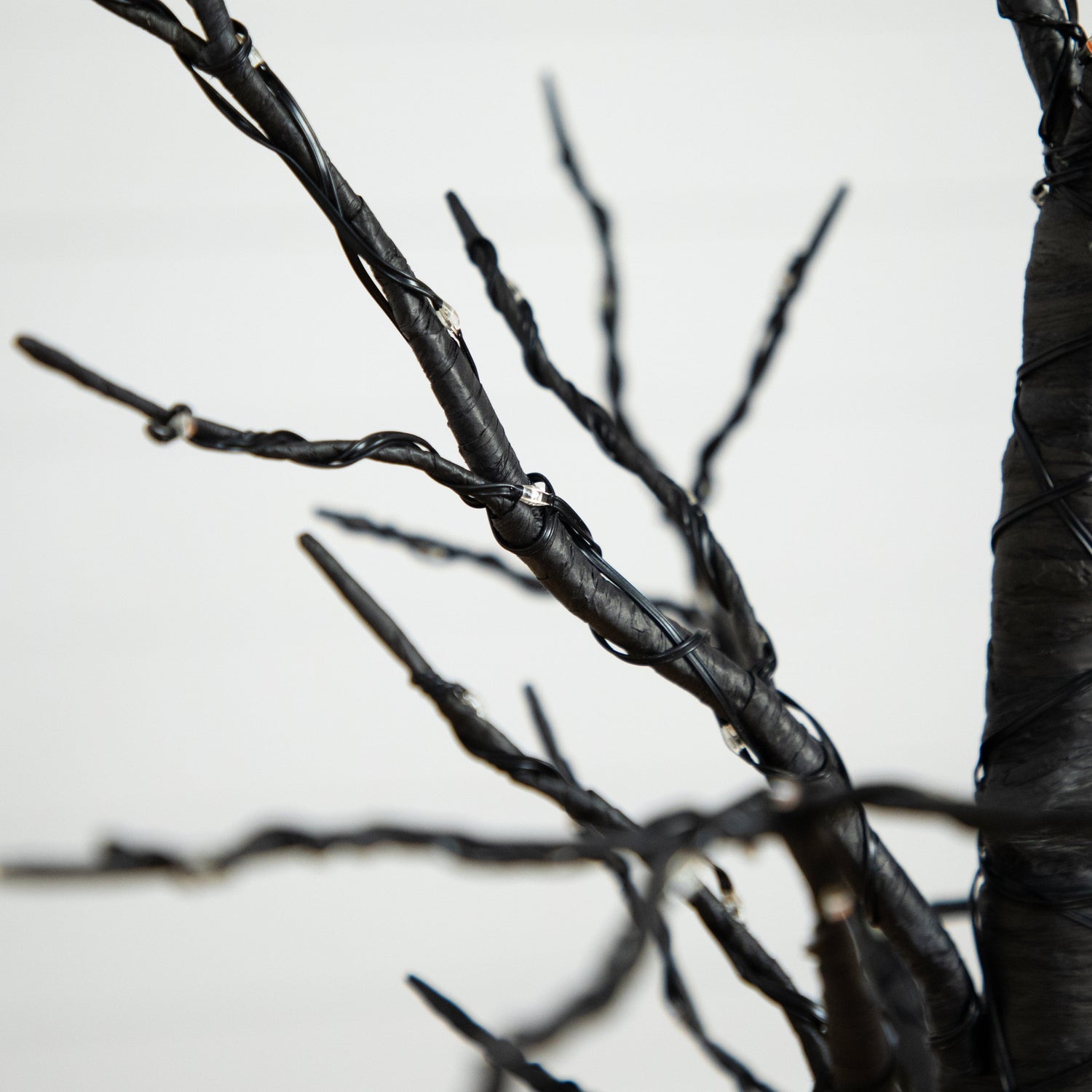 Meet your new scary BFF for Halloween. Say hello to the new twig tree. Inspired by the autumn forest of the Smoky Mountains, you'll be captivated by the natural details throughout. Crafted from high-quality materials, you can bend the branches for a custom look. But the true game-changer is the 240 energy-efficient LED lights that run from top to bottom, turning on with just the click of a button. Scroll through two light colors: purple and orange for a festive touch, perfect for setting a spooky yet cozy ambiance. Standing 4' tall on a sturdy black base, you can DIY and display it in a planter of your choice. Transform any room into a Halloween haven and impress your guests with this unique and stylish decor piece.
