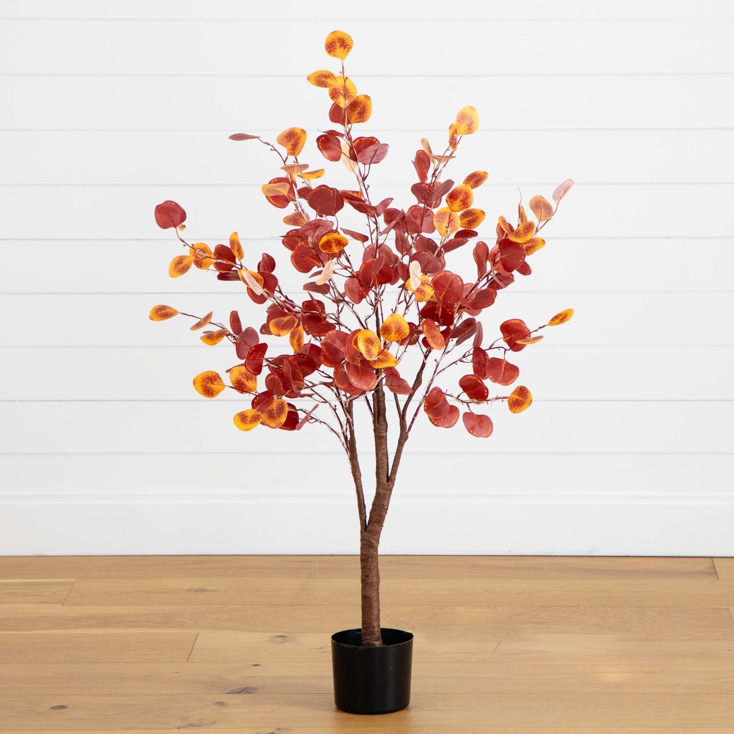 4’ Pre-Lit Autumn Eucalyptus Artificial Fall Tree with 160 Warm White LED Lights