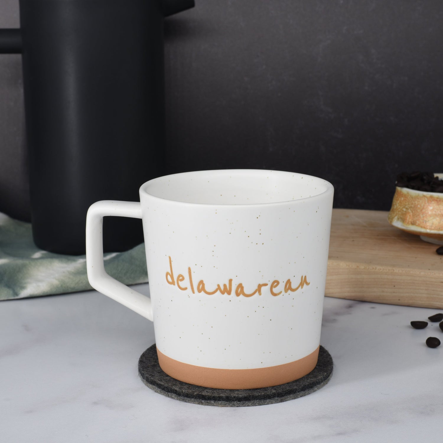 Choosing the morning mug for your favorite wake-up drink is a big decision... but not anymore with the 14oz Denizen Mug.  A "Denizen" is an inhabitant of a particular place -- it's you on this mug!  Designed to hold enough of a steamy brew to get you through the morning and serve a tasty soup at lunch, the Denizen Mug has an ergonomic handle for a comfortable grip.  Plus it's dishwasher and microwave safe and the handle will stay room temperature after microwave use.  Sealed with a satin-touch, white freckled glaze and a relief title on the front, you can wear your heart on your sleeve, or mug with this one; sip, love, repeat.