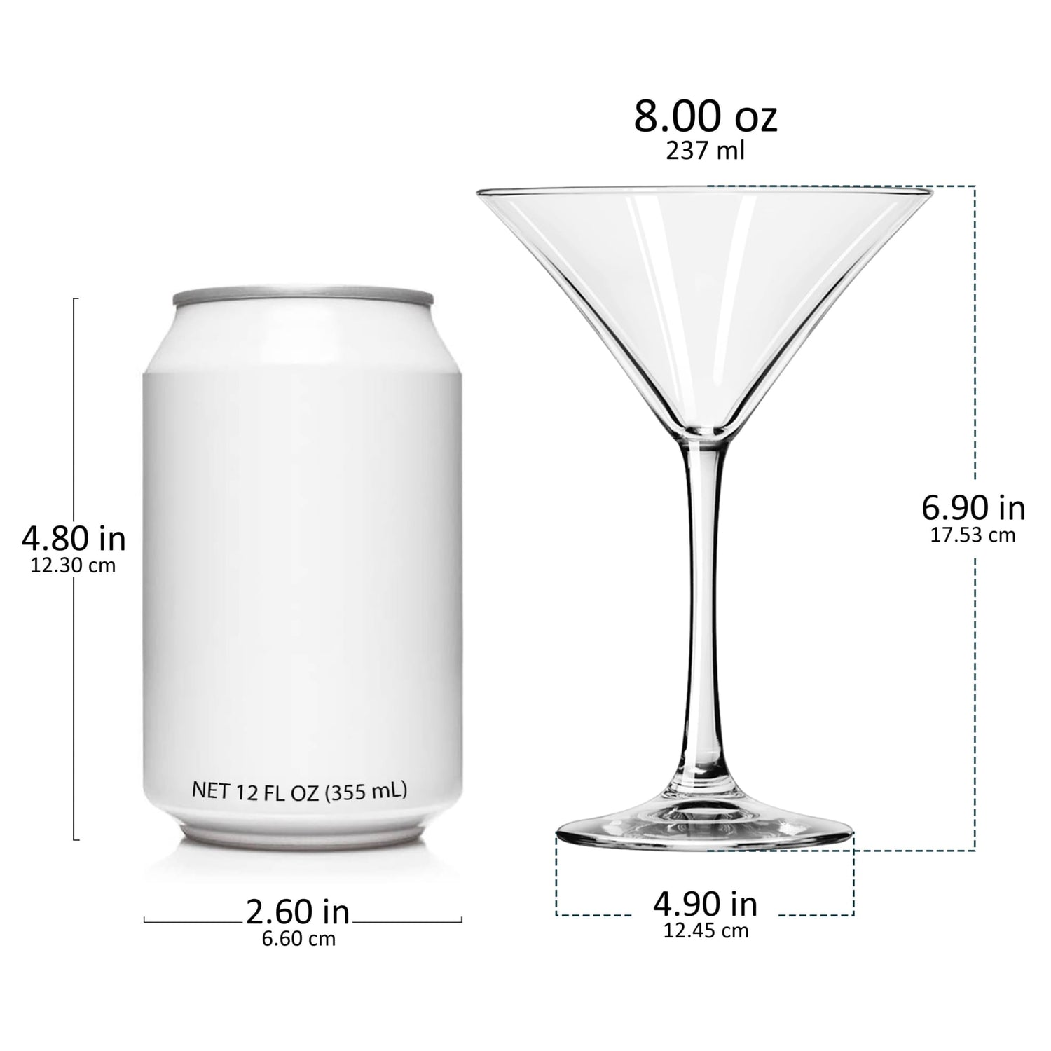 - Includes 6, 8-ounce martini glasses (4.9-inch diameter x 6.9-inch height)