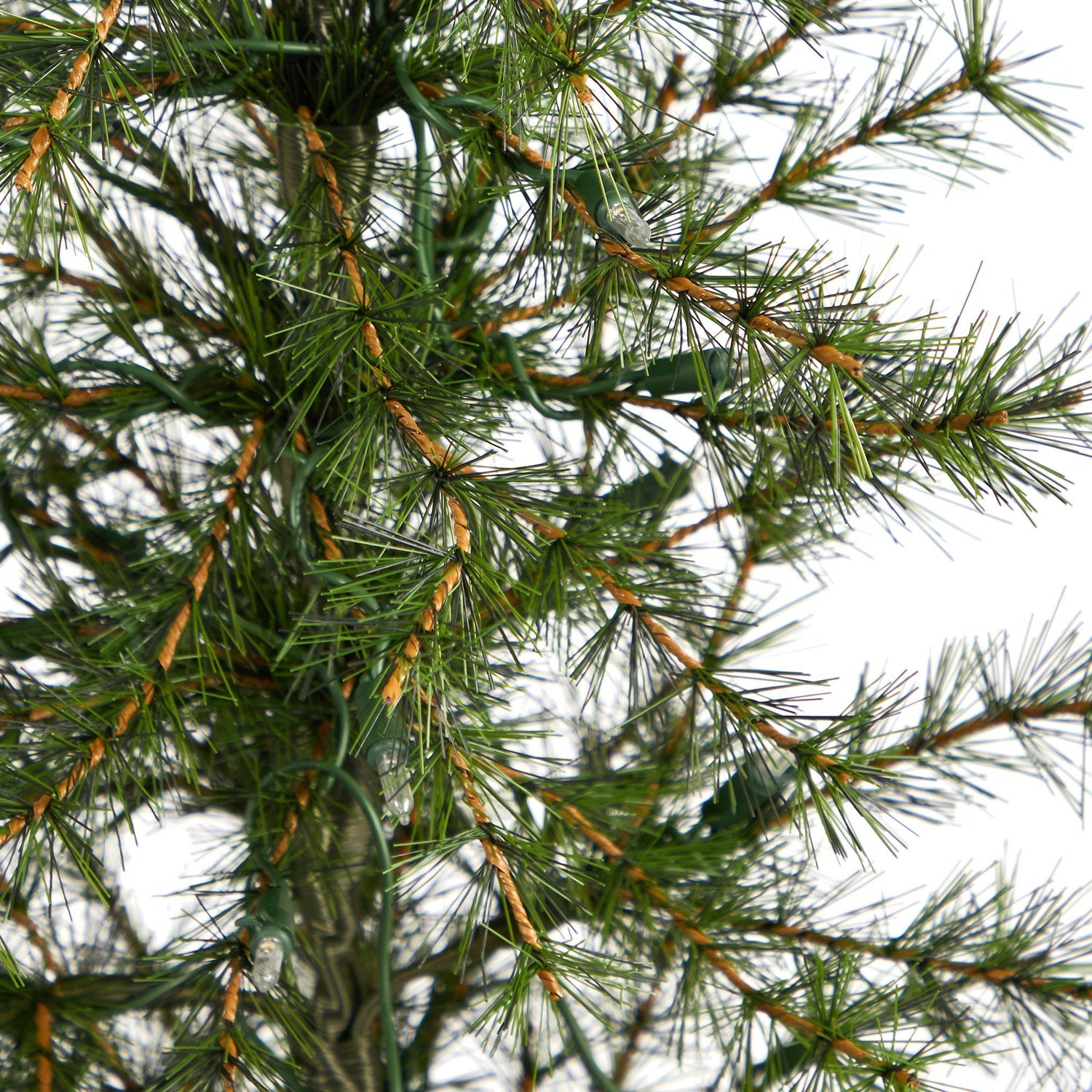 Recreate a Christmas wonderland with this Artificial Christmas Tree. Even if you have a tight area, you can still recreate a minimalist-inspired holiday season. Sparse by design, this dreamy mini Christmas tree has tiers of airy and light needles that can house mini ornaments; feel free to bend the 104 branches safely. Comes with 50 LED lights. Standing 3' from a burlap base (included in height), house in any compact area. Perfect for an office, mantel or desktop.