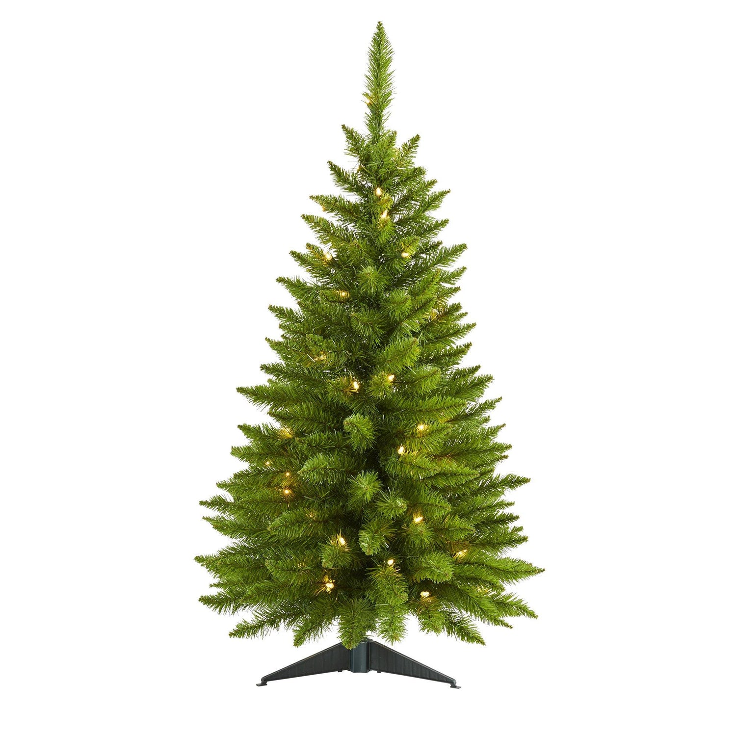Create a traditional Christmas scene even in the smallest settings with the help of this easy and effortless artificial Christmas tree! Completely maintenance-free, this realistic looking fake Christmas tree boasts tiers of evergreen foliage made up of 114 easy-to-bend branch tips for showcasing your favorite holiday ornaments. Arriving pre-strung with 50 clear LED lights to eliminate tangles and carefully stabilized in a plastic stand this versatile 3’ tall artificial Christmas tree will not only make decorating a breeze but ensure your home is always holiday-dressed for years to come.