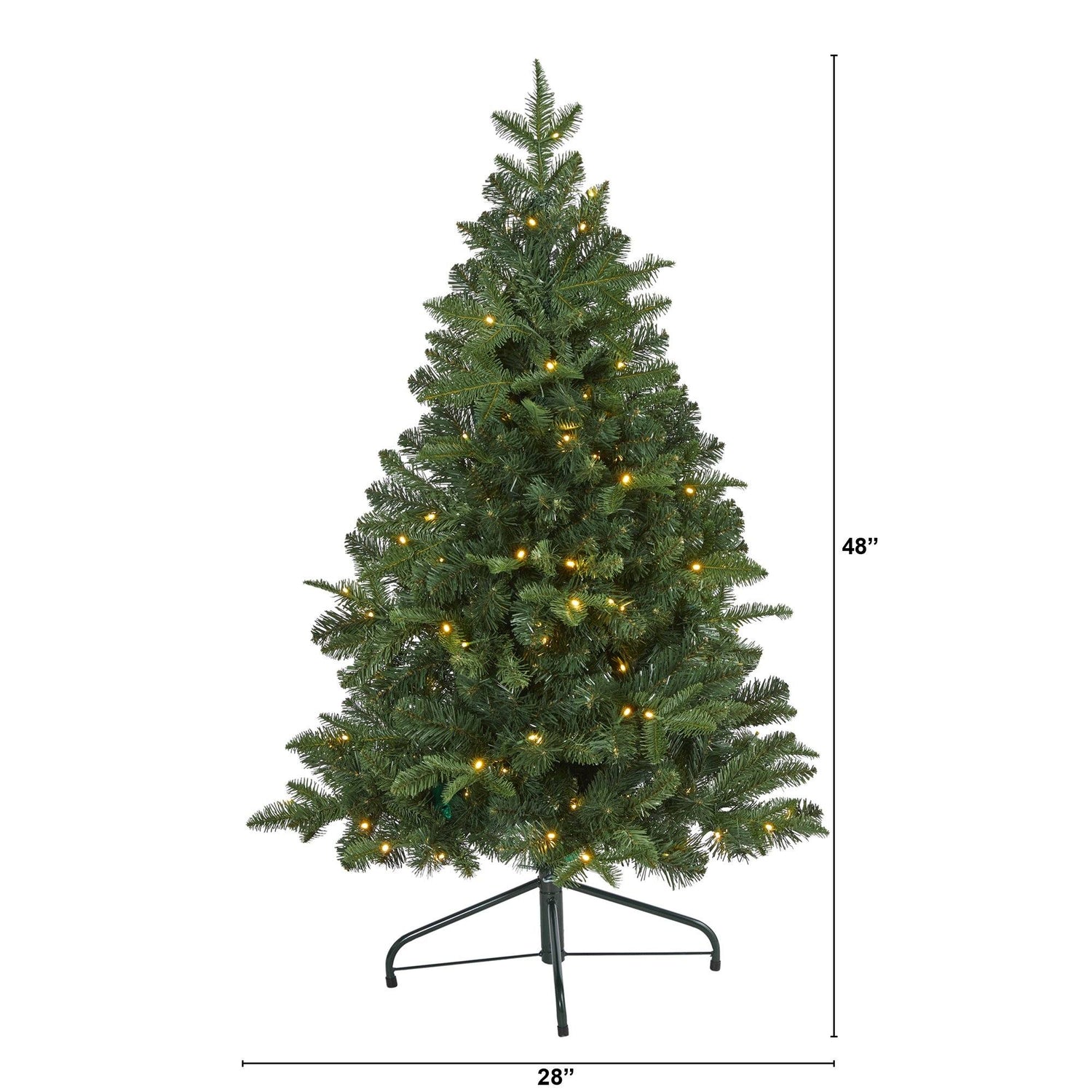4’ Grand Teton Spruce Flat Back Artificial Christmas Tree with 90 Clear LED Lights and 369 Bendable Branches