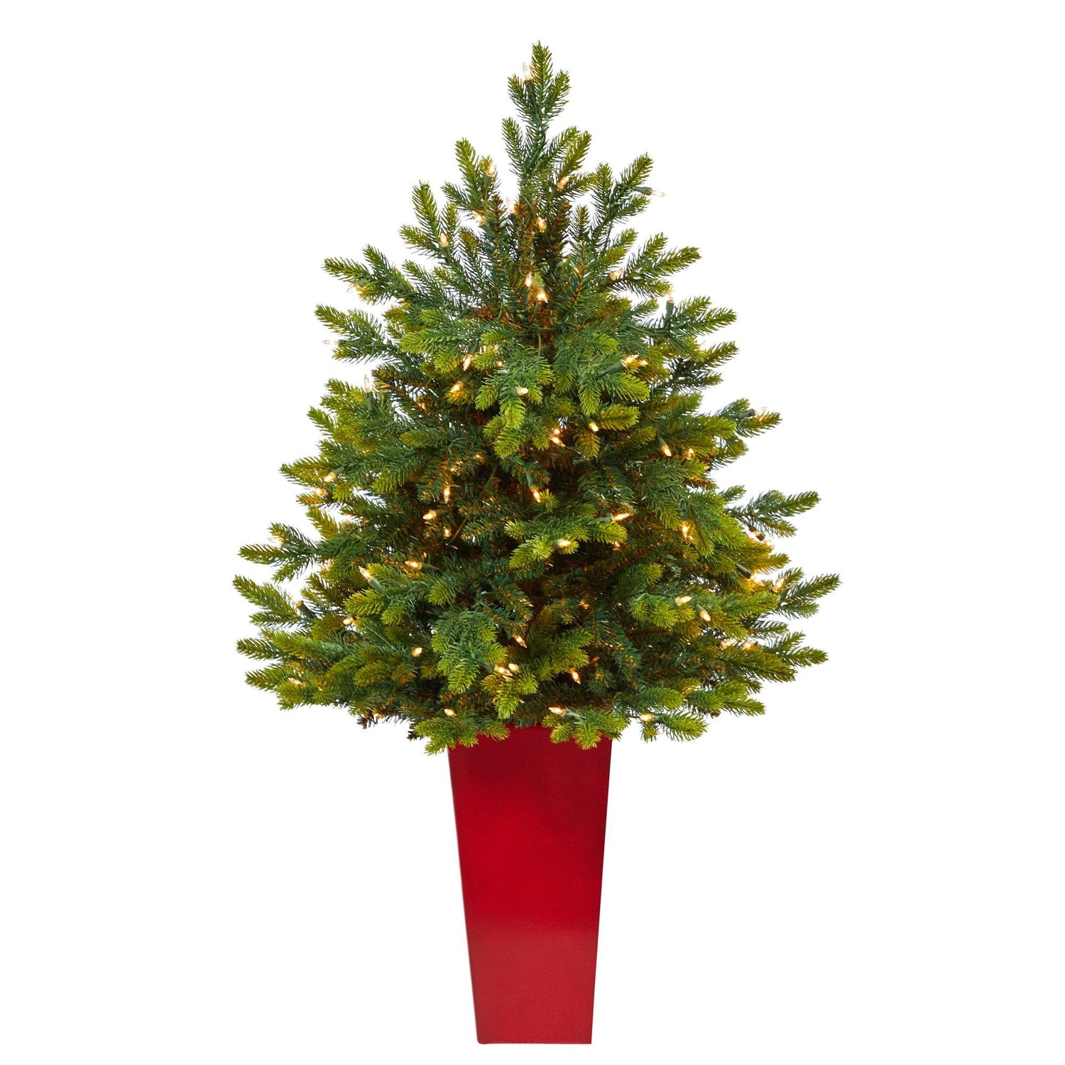 44” North Carolina Fir Artificial Christmas Tree with 150 Clear Lights and 563 Bendable Branches in Red Tower Planter