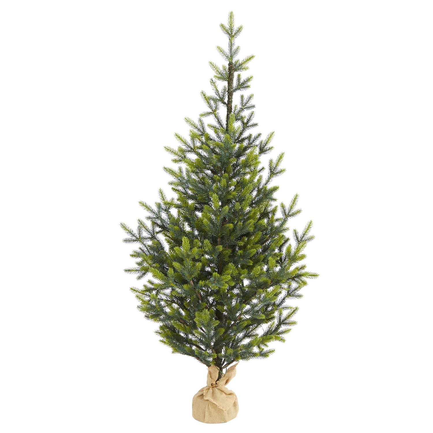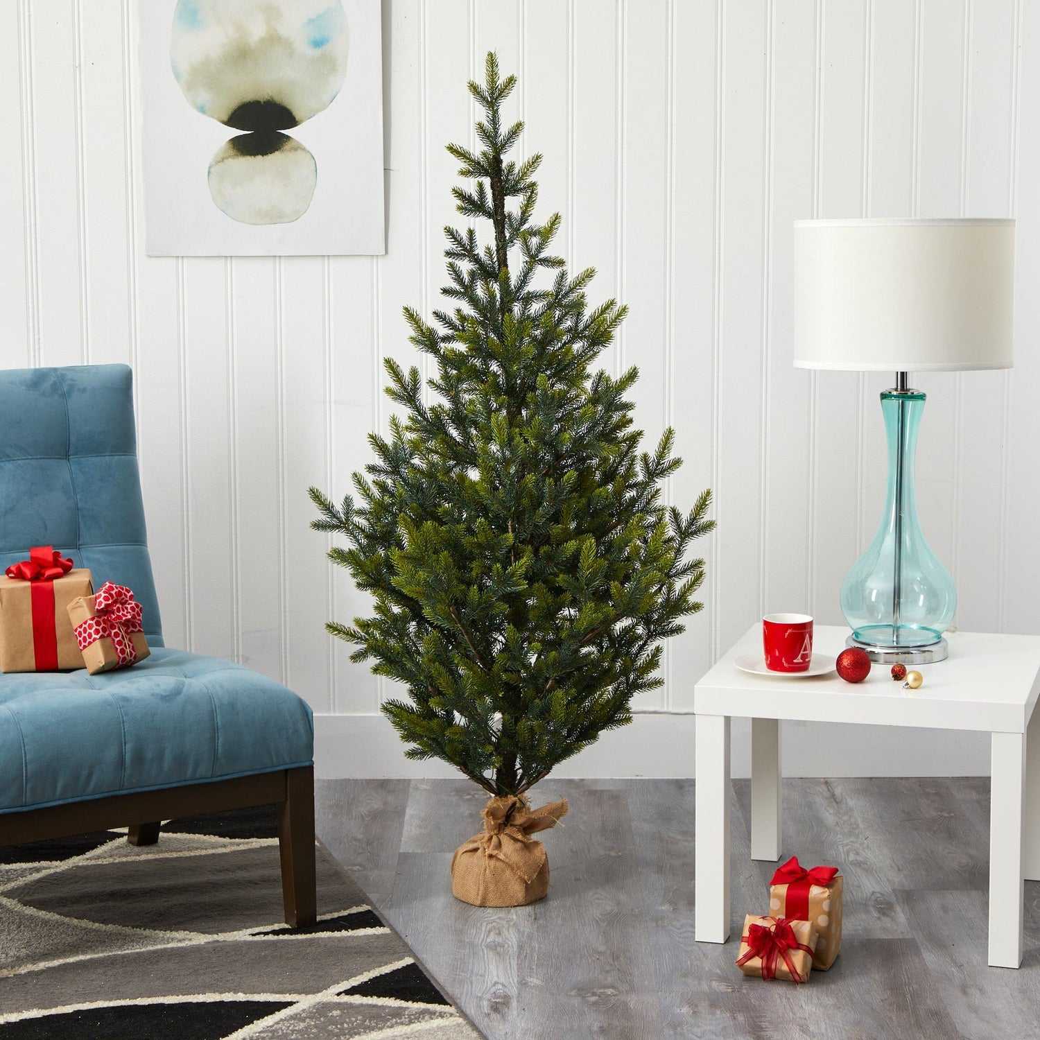 Evoke hints of the holiday spirit on bare surfaces with the help of this natural looking artificial Christmas tree. Featuring a natural silhouette, this fraser fir Christmas tree boasts a collection of realistic looking foliage with 853 easy-to-bend branches for easy and effortless decorating. Arriving pre-strung with 200 clear LED lights to eliminate tangles and carefully stabilized in a burlap wrapped base, this versatile 5’ Christmas tree would undoubtedly make any space merry throughout the holiday season.